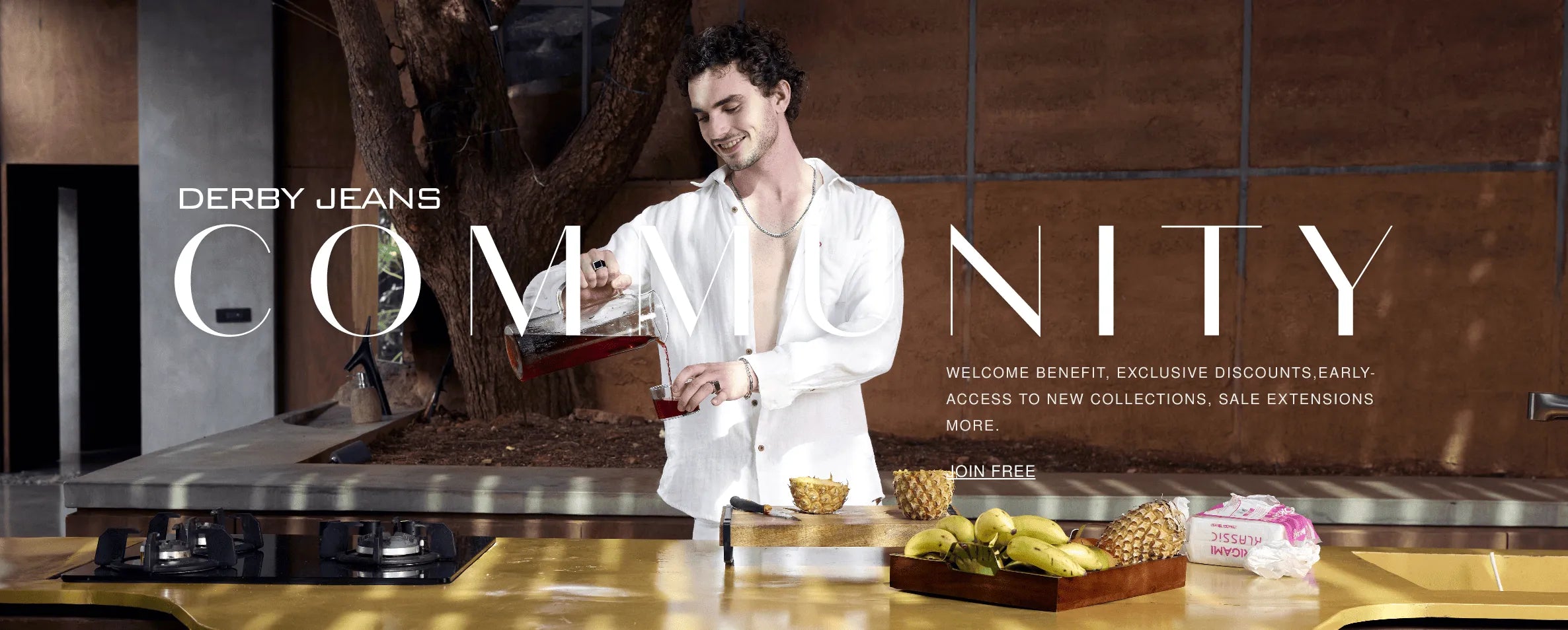 AT DERBY, WE’RE MORE THAN JUST DENIM; WE’RE A COMMUNITY BUILT ON QUALITY, PURPOSE, AND STYLE. START EXPLORING OUR CATEGORIES AND MAKE SURE YOU JOIN DERBY JEANS COMMUNITY FOR EXCLUSIVE BENEFITS