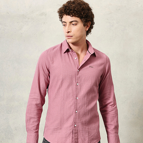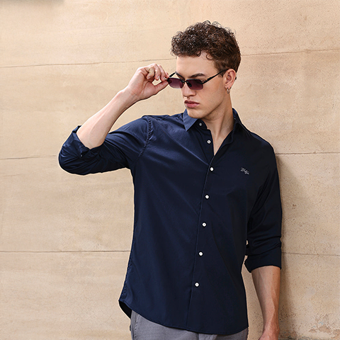 Navy Print Cotton Jacquard Slim Fit Shirt