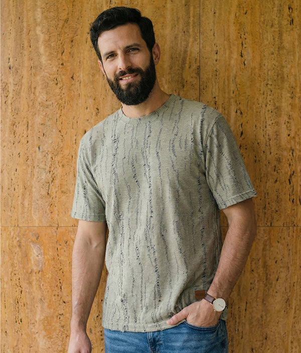 Coral Seersucker Print Cotton Slim Fit Half Sleeve Shirt
