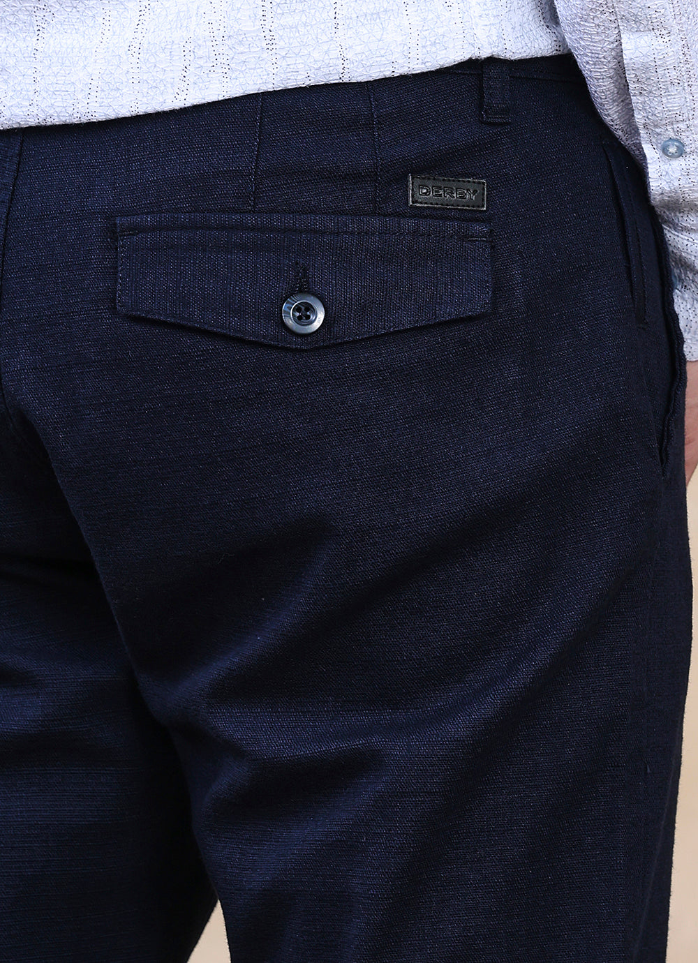 Crafted from premium cotton slub fabric, these trousers offer a subtle texture that elevates the classic navy shade. The slim fit cut delivers a modern, tailored silhouette, while the breathable cotton ensures all-day comfort and ease of movement.