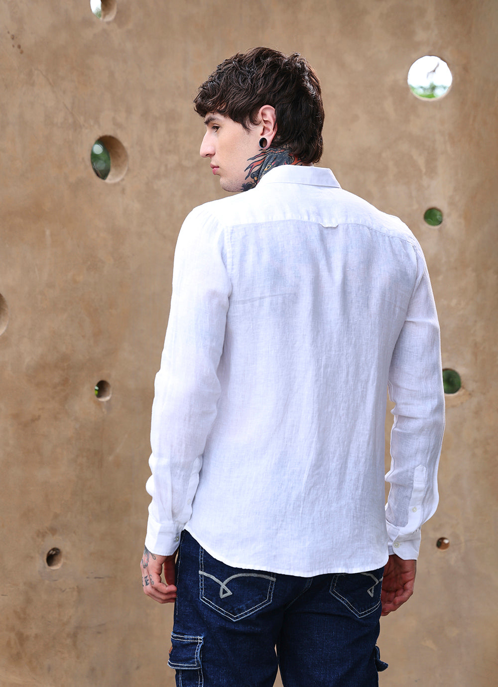 White Solids Linen Slim Fit Shirt
