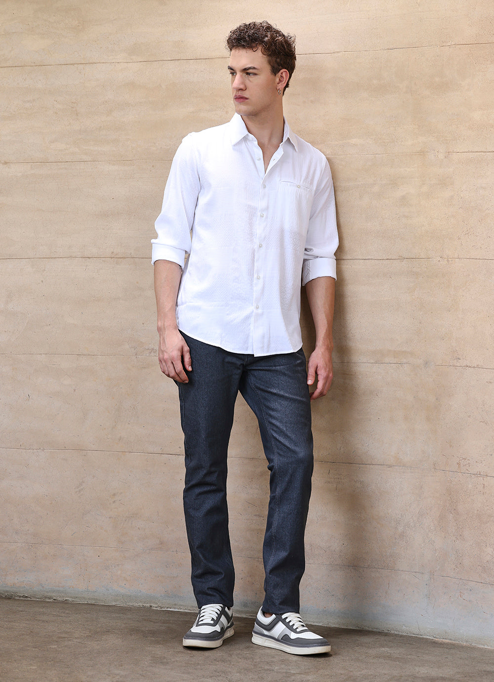 Crafted from premium cotton twill, these jeans balance durability with refined comfort. The dark grey wash with subtle fading adds depth and character, making them versatile for both casual and smart-casual looks. The slim fit cut tapers neatly for a sharp silhouette, while the twill weave ensures a soft yet structured drape that elevates everyday denim.