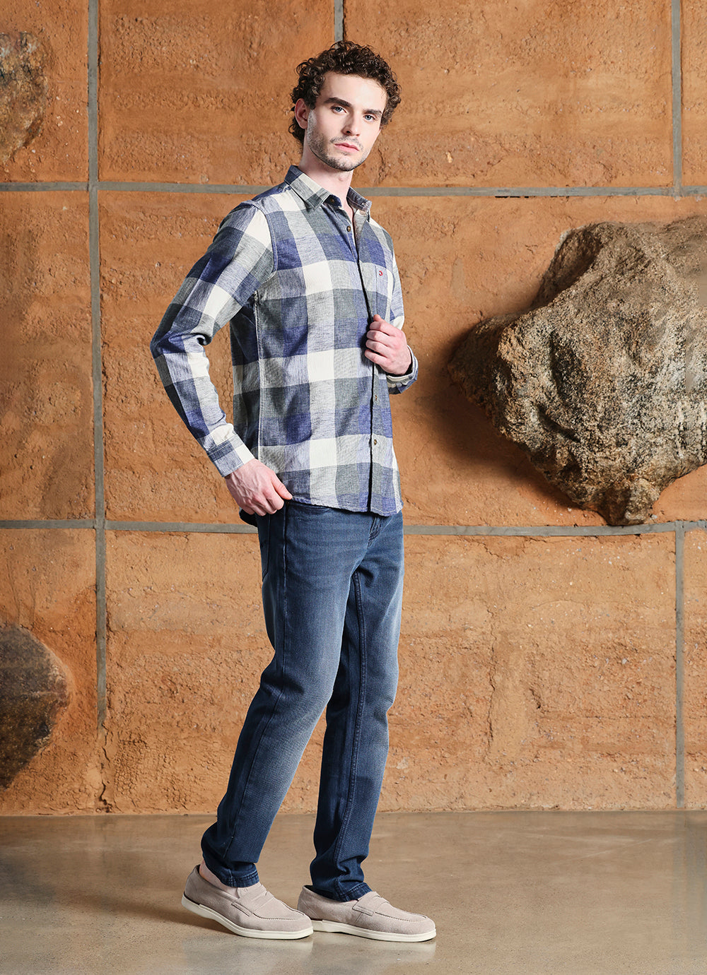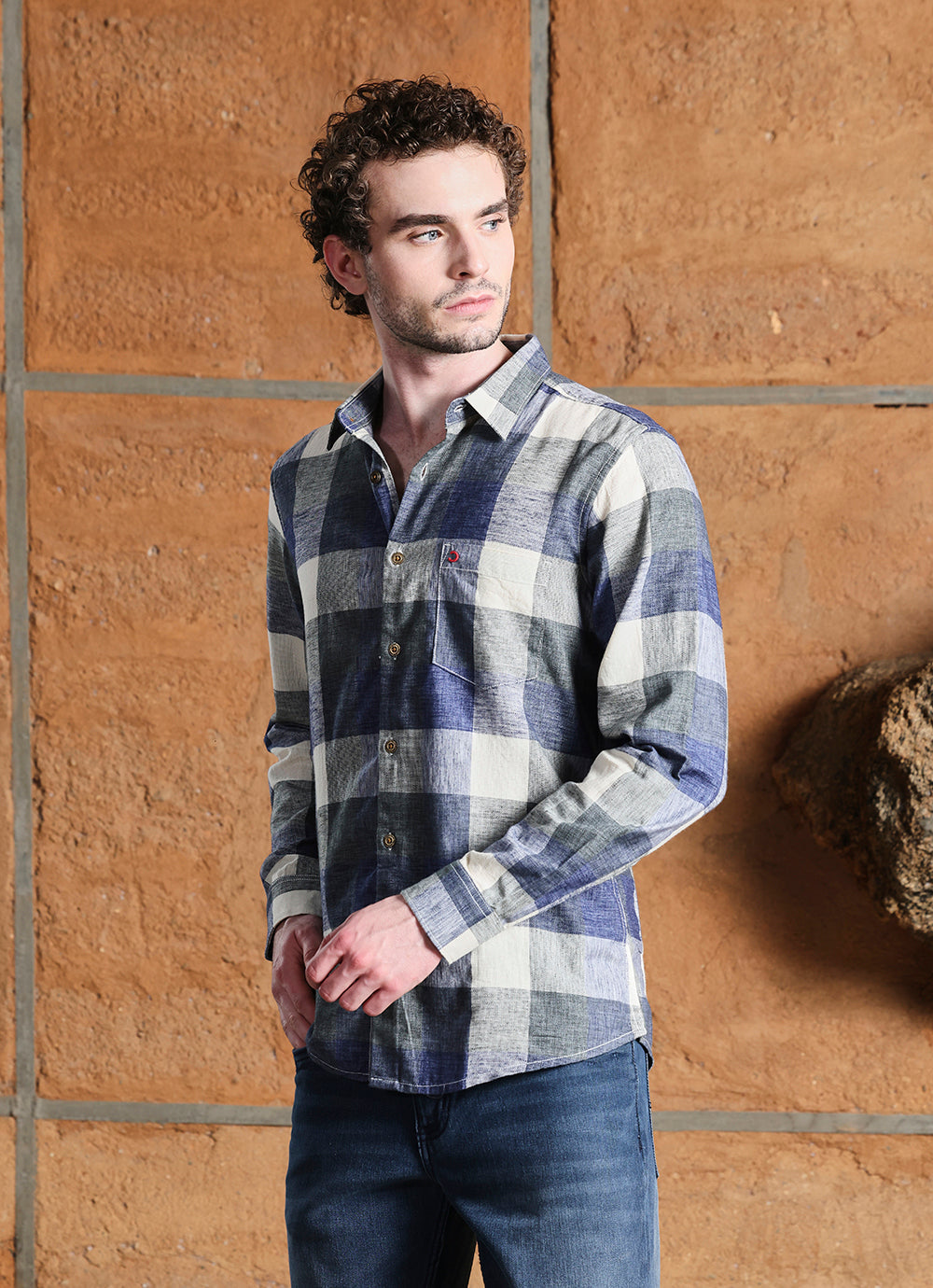 Make a confident style statement with this Green Checks Indigo Slim Fit Shirt. Featuring bold green, indigo, and off-white checks, this shirt blends timeless design with a modern fit. Tailored for a sharp yet comfortable silhouette, it’s crafted from breathable fabric that’s perfect for all-day wear.