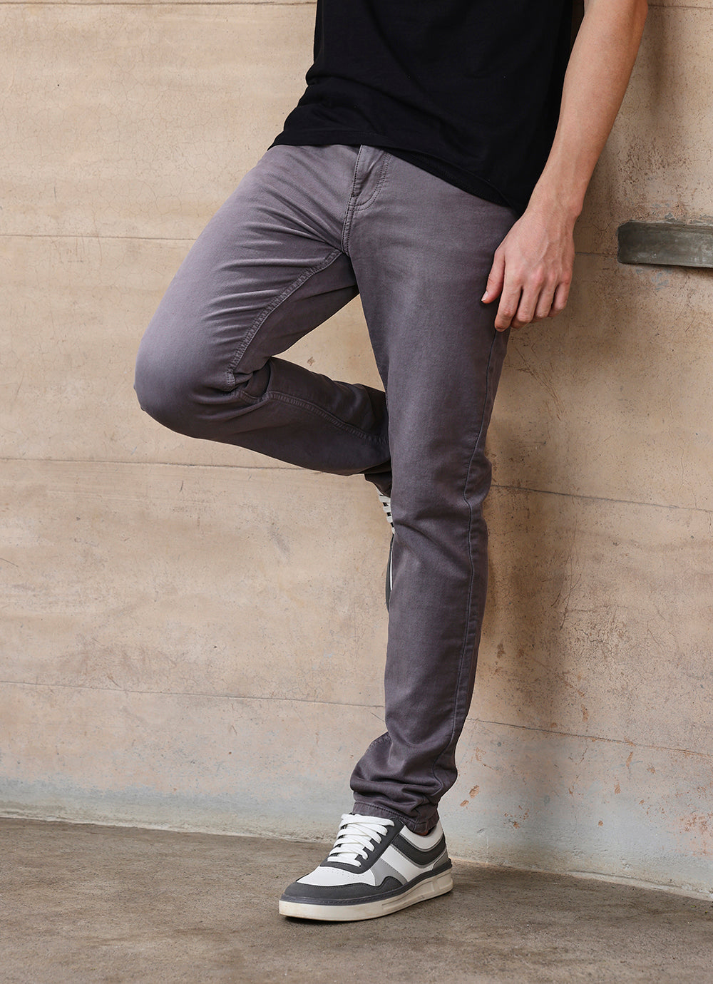Modern and versatile, these light grey slim-fit jeans are crafted from a knitted fabric that blends stretch and comfort with a sharp silhouette. The clean, solid finish makes them a refined alternative to traditional denim, perfect for dressing up or keeping it casual with ease.