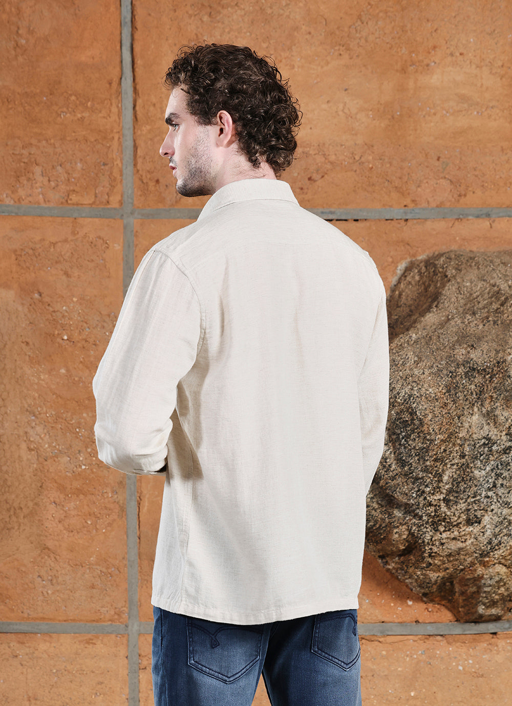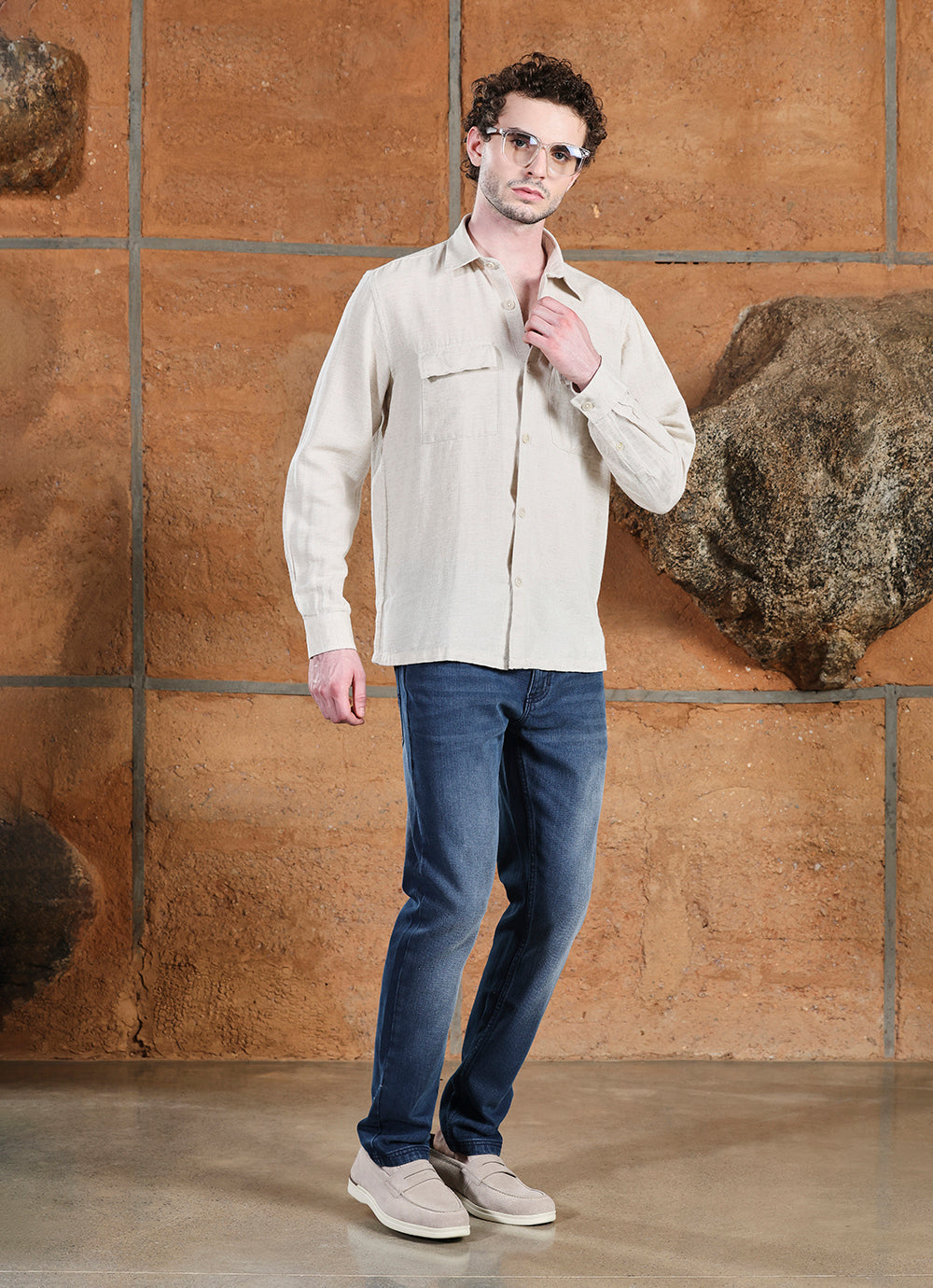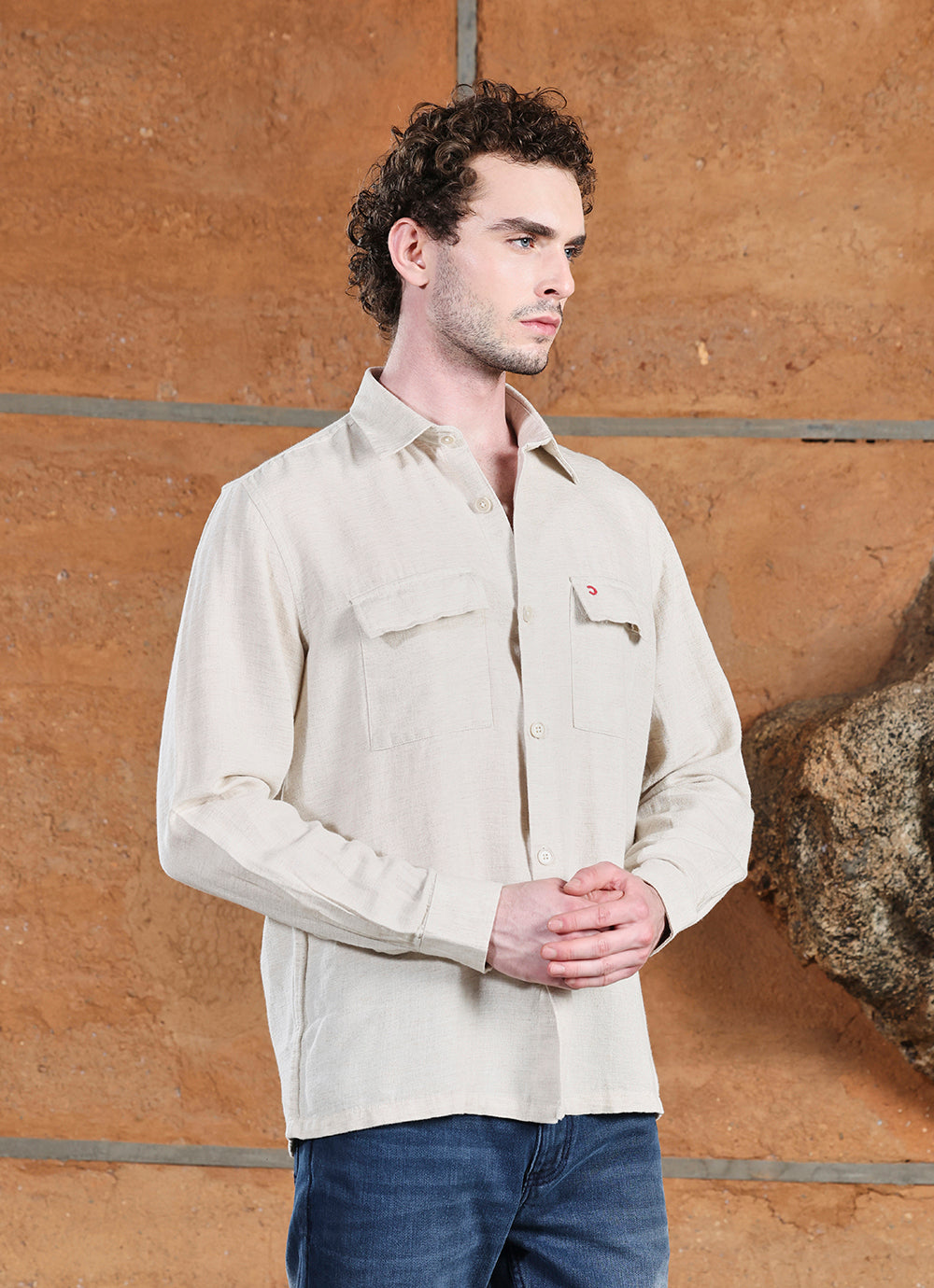 Crafted from a premium linen blend, this shirt brings effortless elegance to everyday dressing. The natural hue and regular fit offer a timeless aesthetic, while the breathable fabric ensures all-day comfort. A versatile staple, it strikes the perfect balance between laid-back ease and refined style.