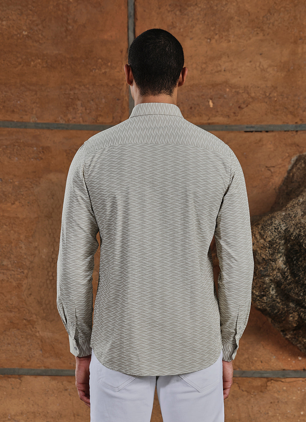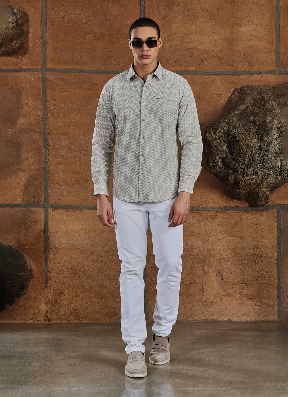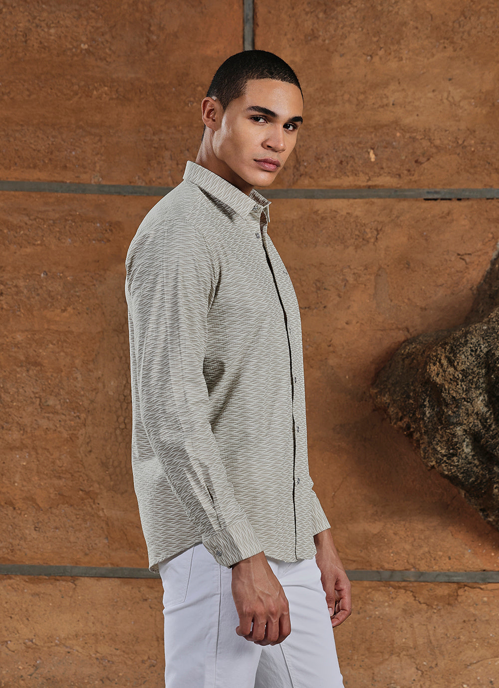 Understated yet striking, this Olive Print Cotton Slim Fit Shirt brings modern refinement to your wardrobe. The subtle wave-inspired print adds texture and movement to the muted olive base, striking the perfect balance between minimalism and detail. Cut in a sleek slim fit and crafted from breathable cotton, it ensures effortless wearability while keeping your look sharp.
