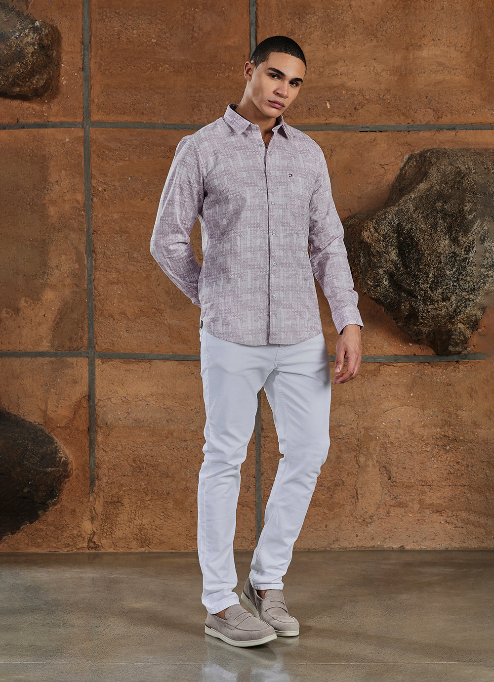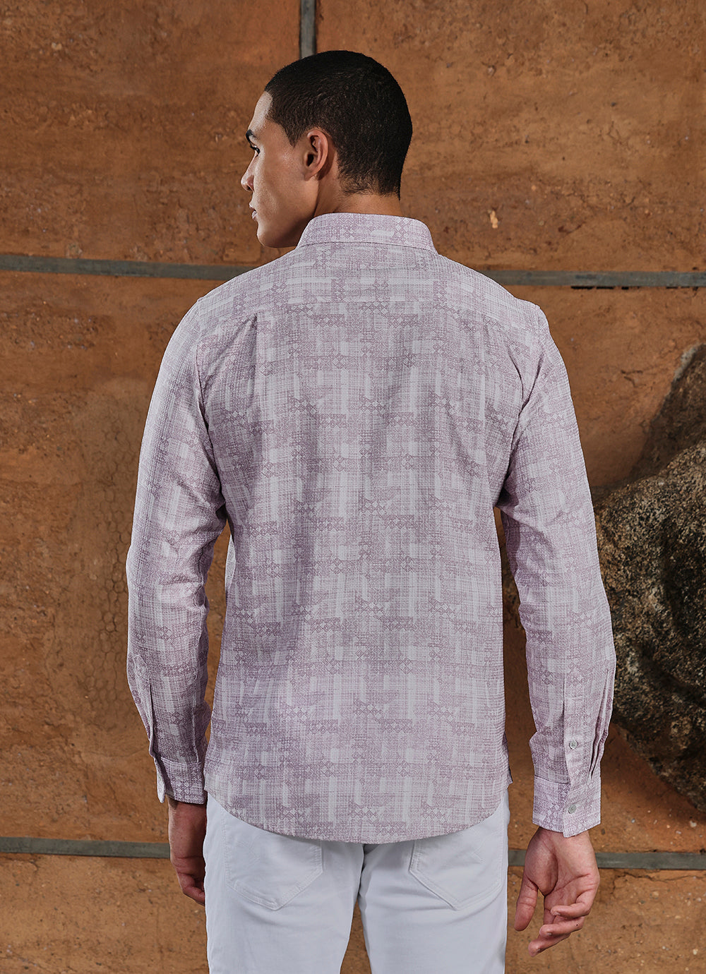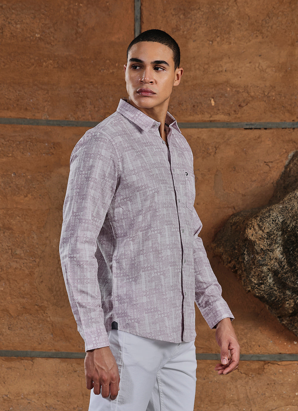 Add a fresh touch to your wardrobe with this Pink Print Cotton Slim Fit Shirt. Made from premium cotton, it delivers all-day comfort while the subtle geometric print adds a modern twist. The slim fit cut gives a sharp, tailored appeal, making it versatile enough for both work and casual outings.