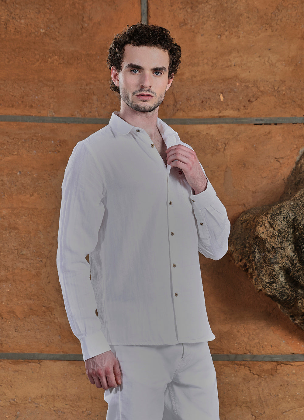 White Solids Cotton Slim Fit Shirt