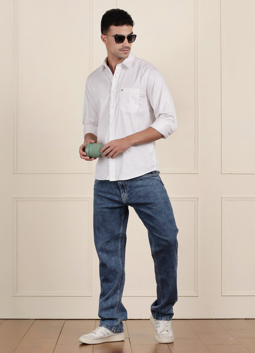 Stand out in sunshine—this yellow printed slim-fit shirt is for bold days and better vibes. Pair with off-white pants or dark jeans.