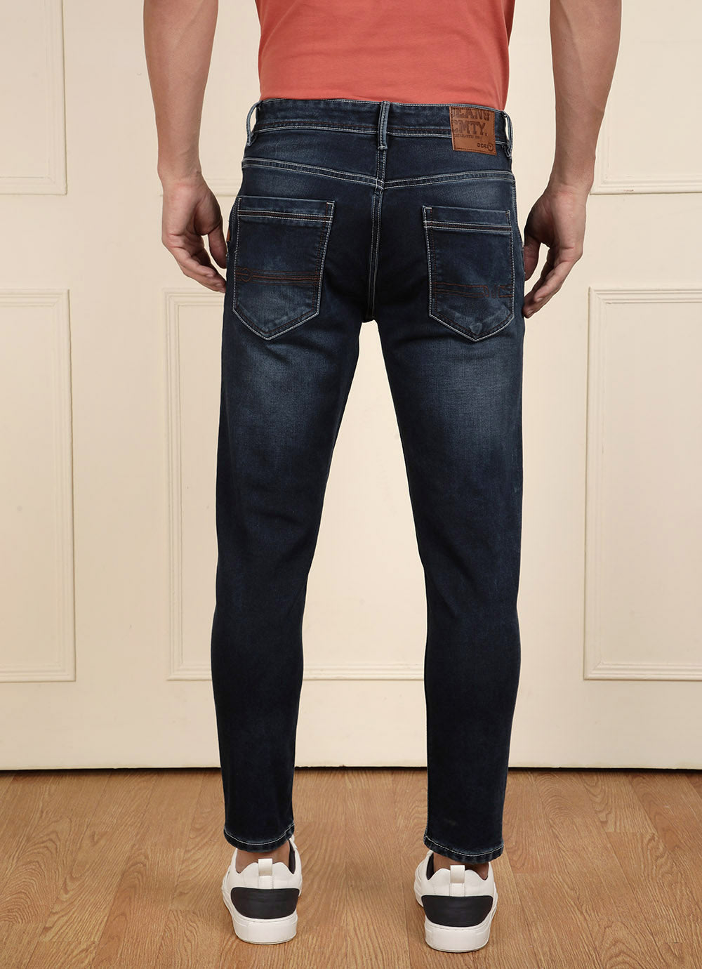 Put a twist in your style statement by wearing this pair of blue jeans. Tailored with quality fabric, this pair of jeans will provide a smooth touch against your skin. Pull off stylish casual looks by donning these Crop fit jeans with a Tshirt and a pair of sneakers.