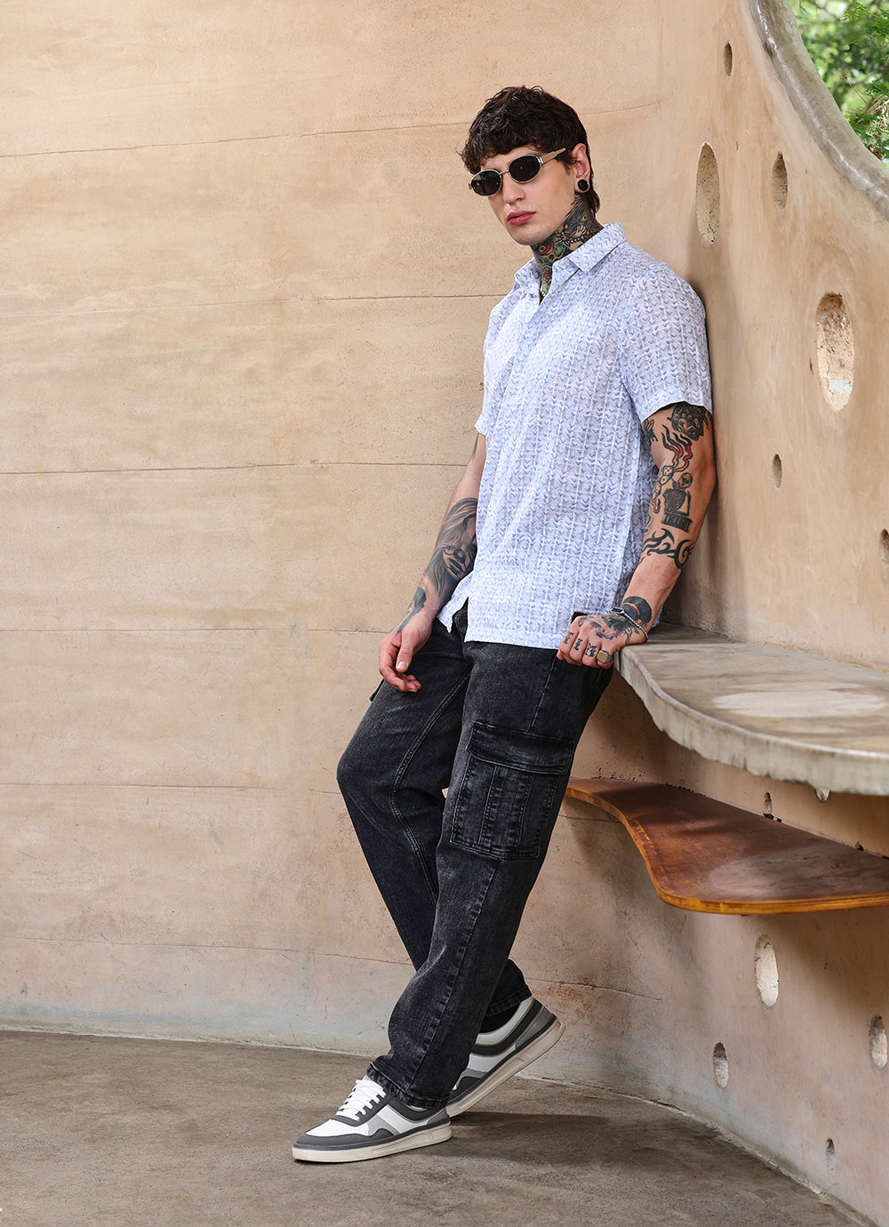 Where rugged meets refined. These black crosshatch cargo jeans strike the balance between utility and style, offering structure, comfort, and functional pockets without compromising on silhouette.