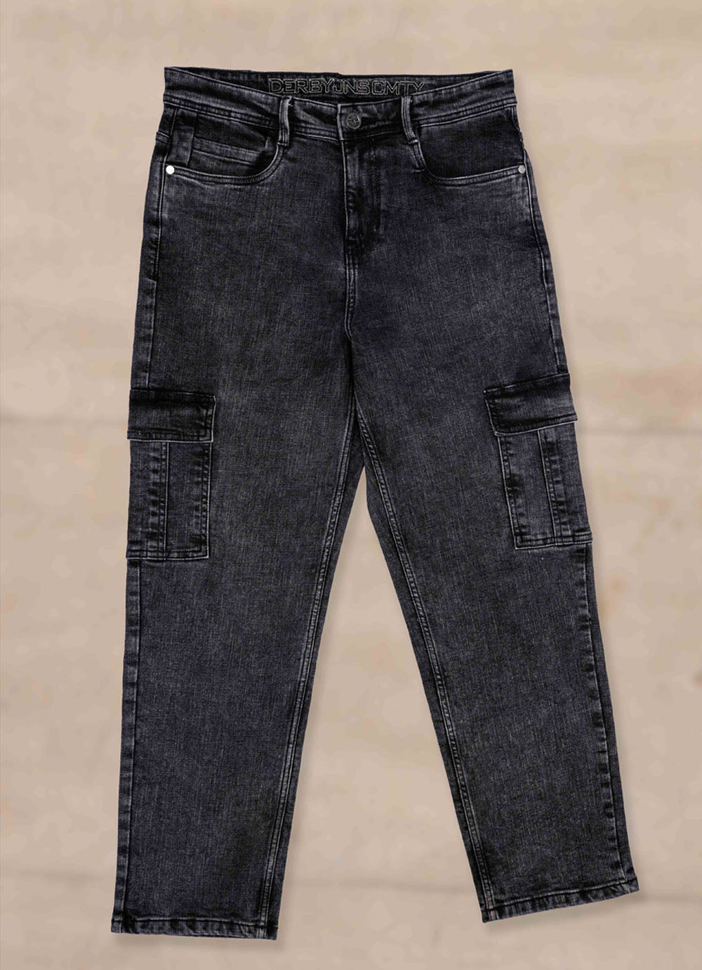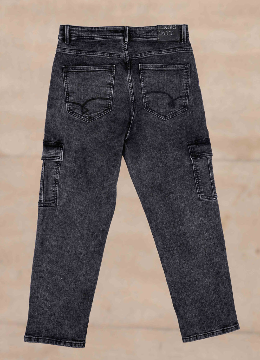 Black Faded Cross Hatch Cargo Fit Jeans