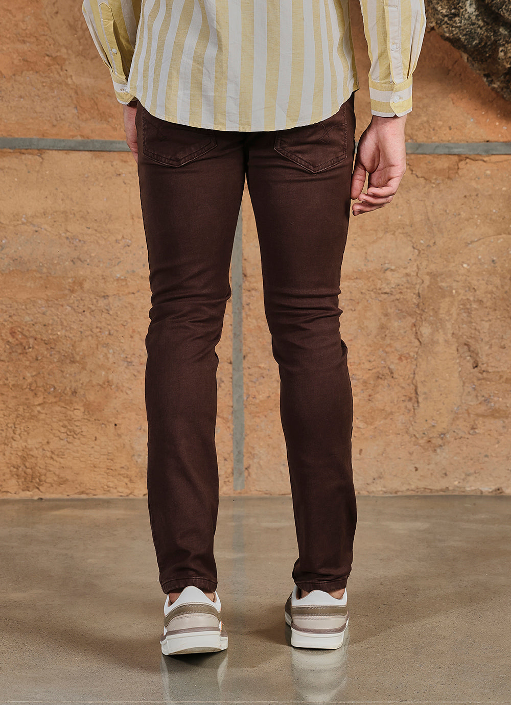 Rich, refined, and versatile. These deep brown slim-fit jeans are crafted in a knitted texture that ensures comfort while keeping a tailored shape. A wardrobe essential that adds warmth and character to your look.