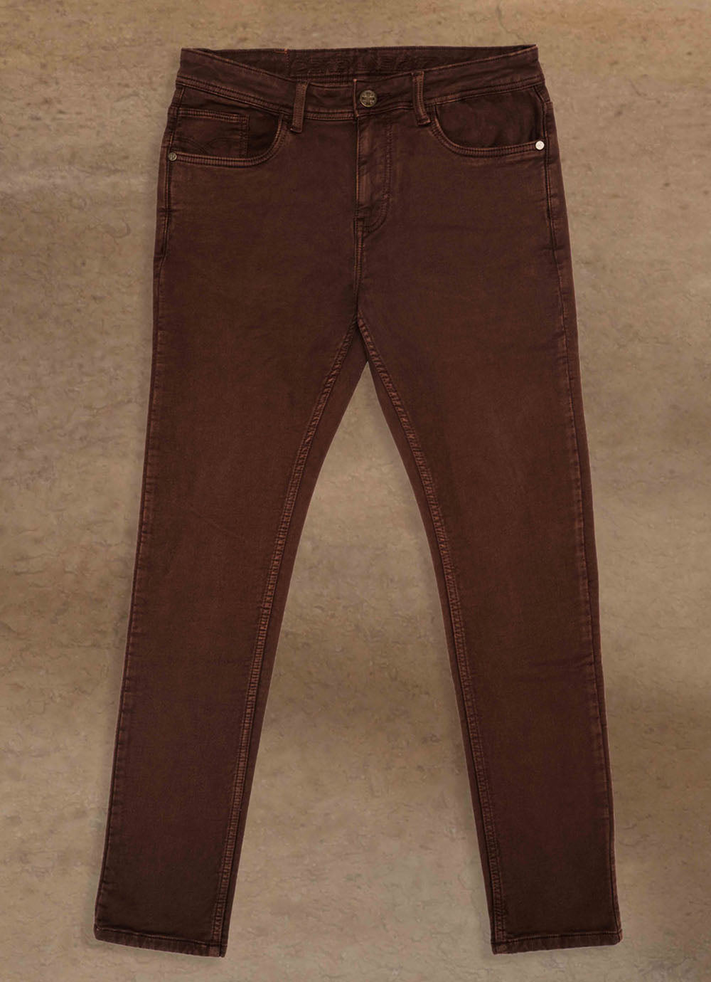 Brown Solid Knitted Slim Fit Jeans