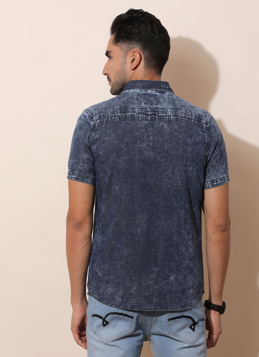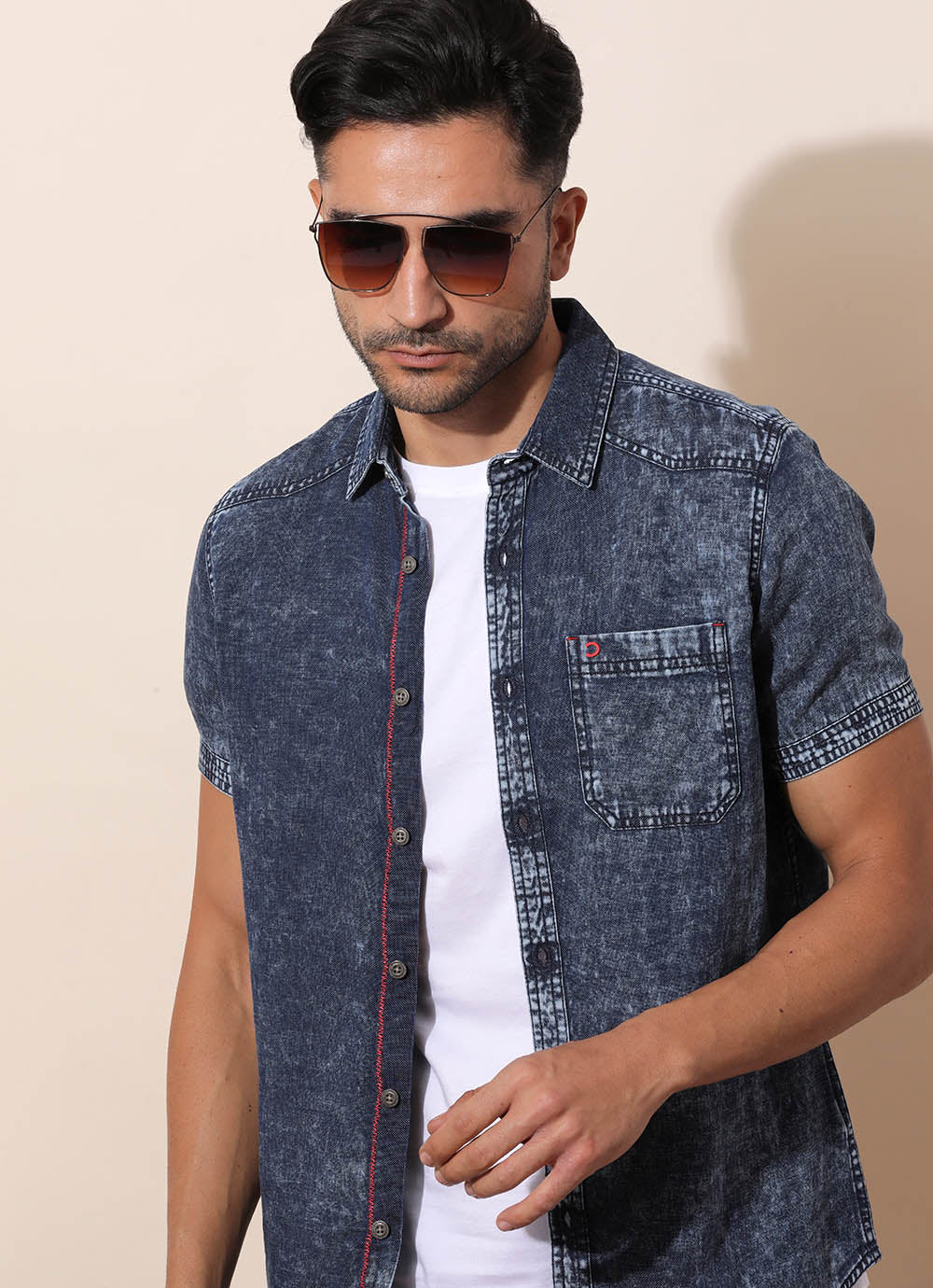 Blue Cotton Shirt – a contemporary masterpiece for the modern gentleman! With half sleeves and a Cuban collar, it blends retro charm with modern sophistication. The patch pocket adds functionality and style. Pair with tailored shorts and loafers for a relaxed yet refined look that's perfect for weekend brunches or casual outings. Elevate your style game with this voguish wardrobe essential!