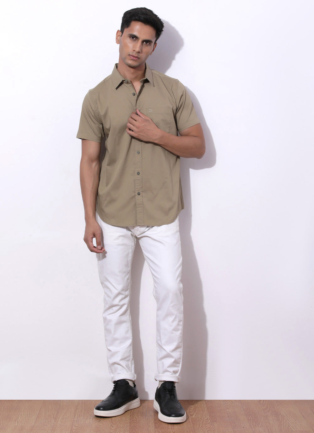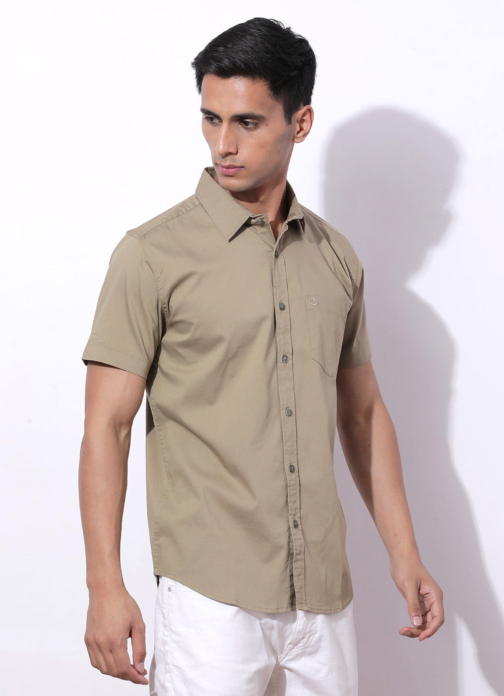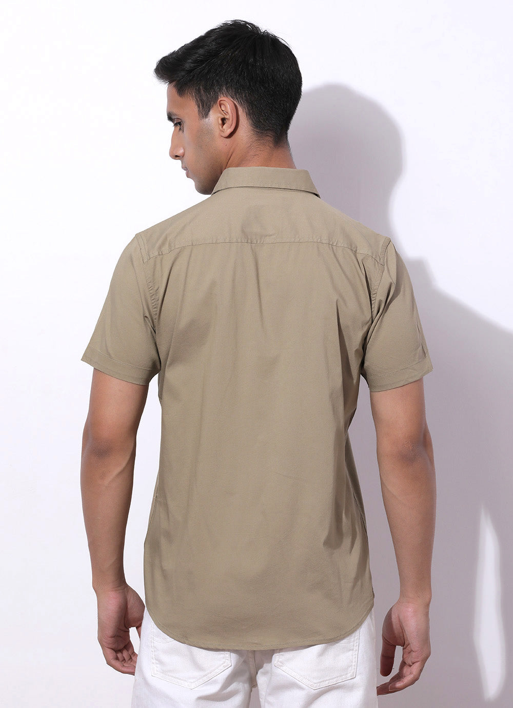 A wardrobe essential redefined - Khaki Slim Fit Shirt. Crafted from an cotton fabric blend, it offers unparalleled comfort and durability. With short sleeves and a single patch pocket, it exudes effortless style. Pair with chino shorts and boat shoes for a laid-back yet polished look that's perfect for any occasion. Elevate your summer wardrobe with this versatile and chic shirt.