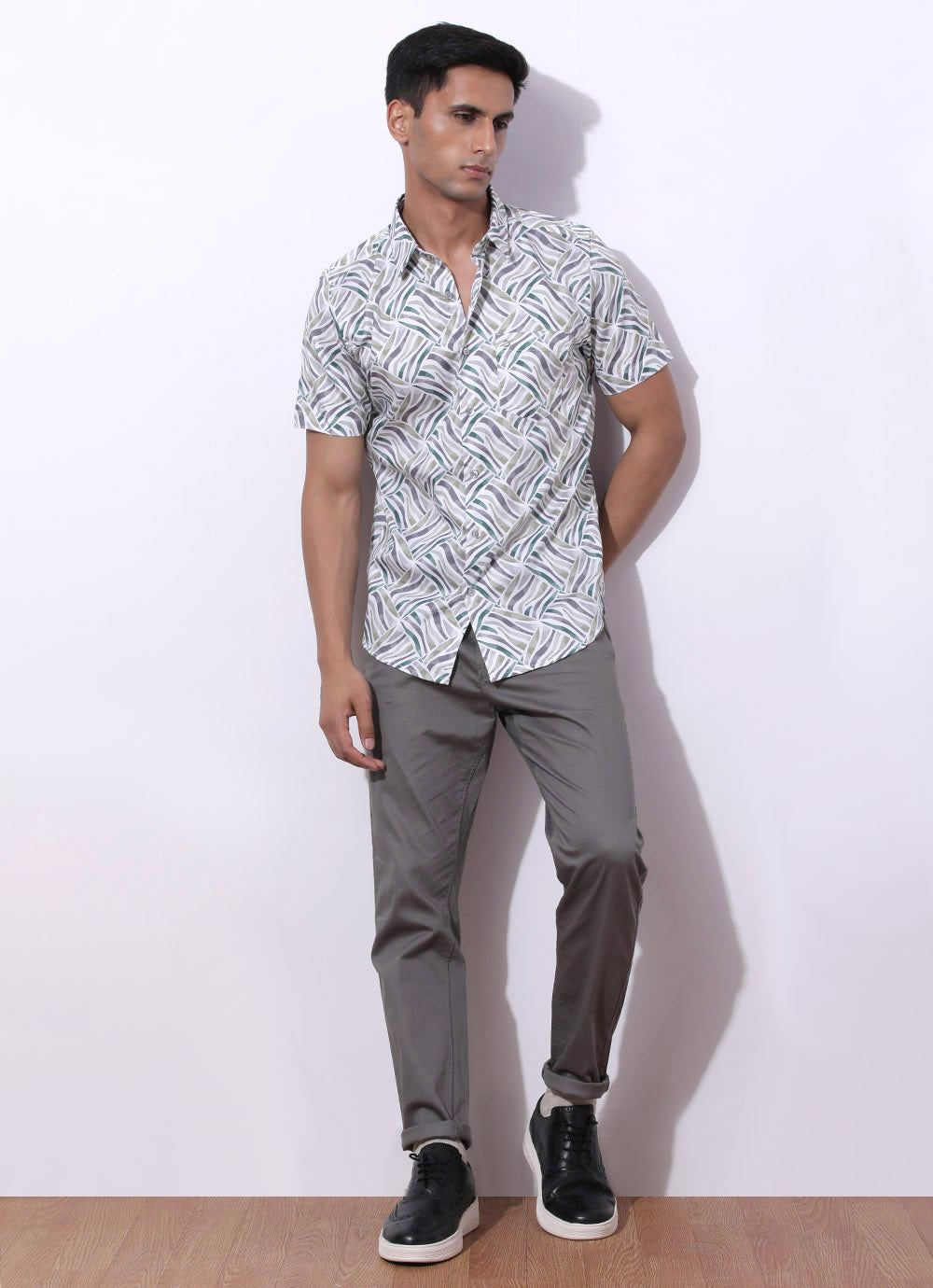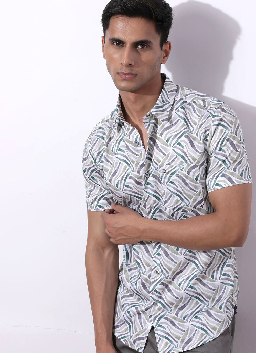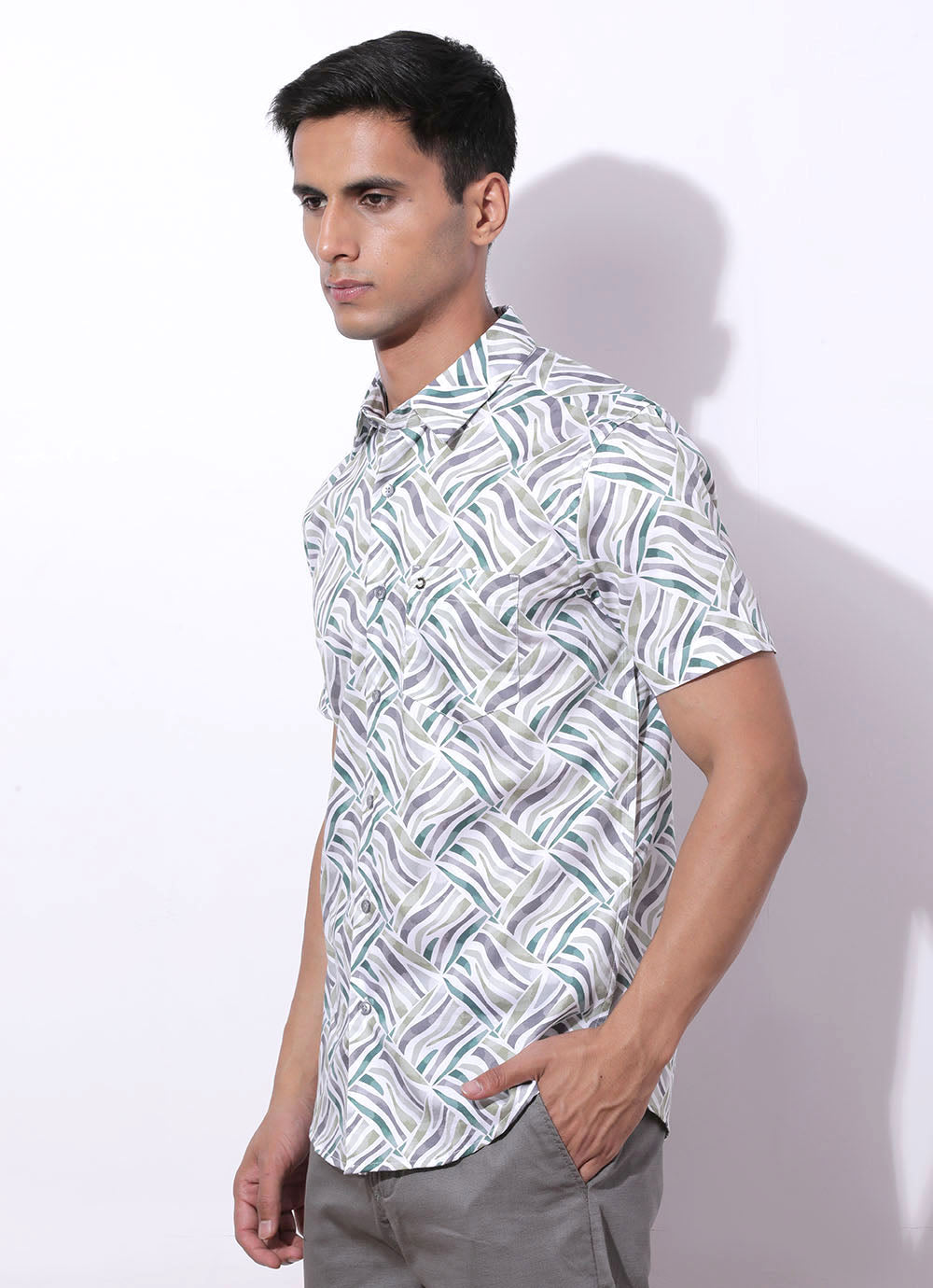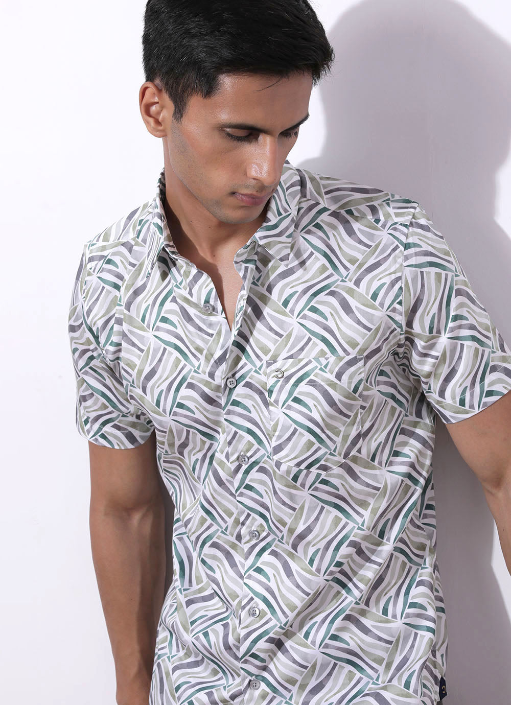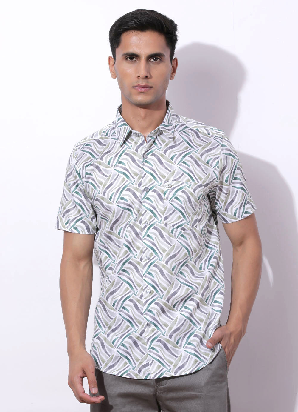 Green Cotton Shirt – a jungle of style for the daring explorer! With half sleeves and a spread collar, it's classic with a twist. The patch pocket adds utility and flair, perfect for stashing your map or adventure essentials. Pair with cargo pants and hiking boots for a look that's ready to conquer any terrain. Adventure awaits – dress the part!