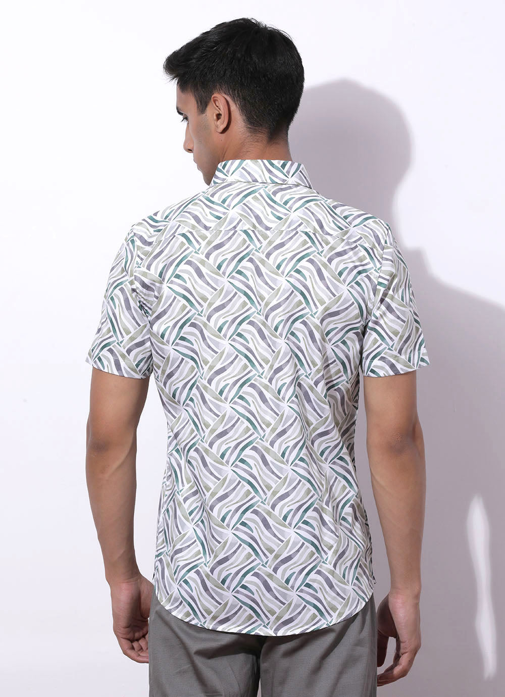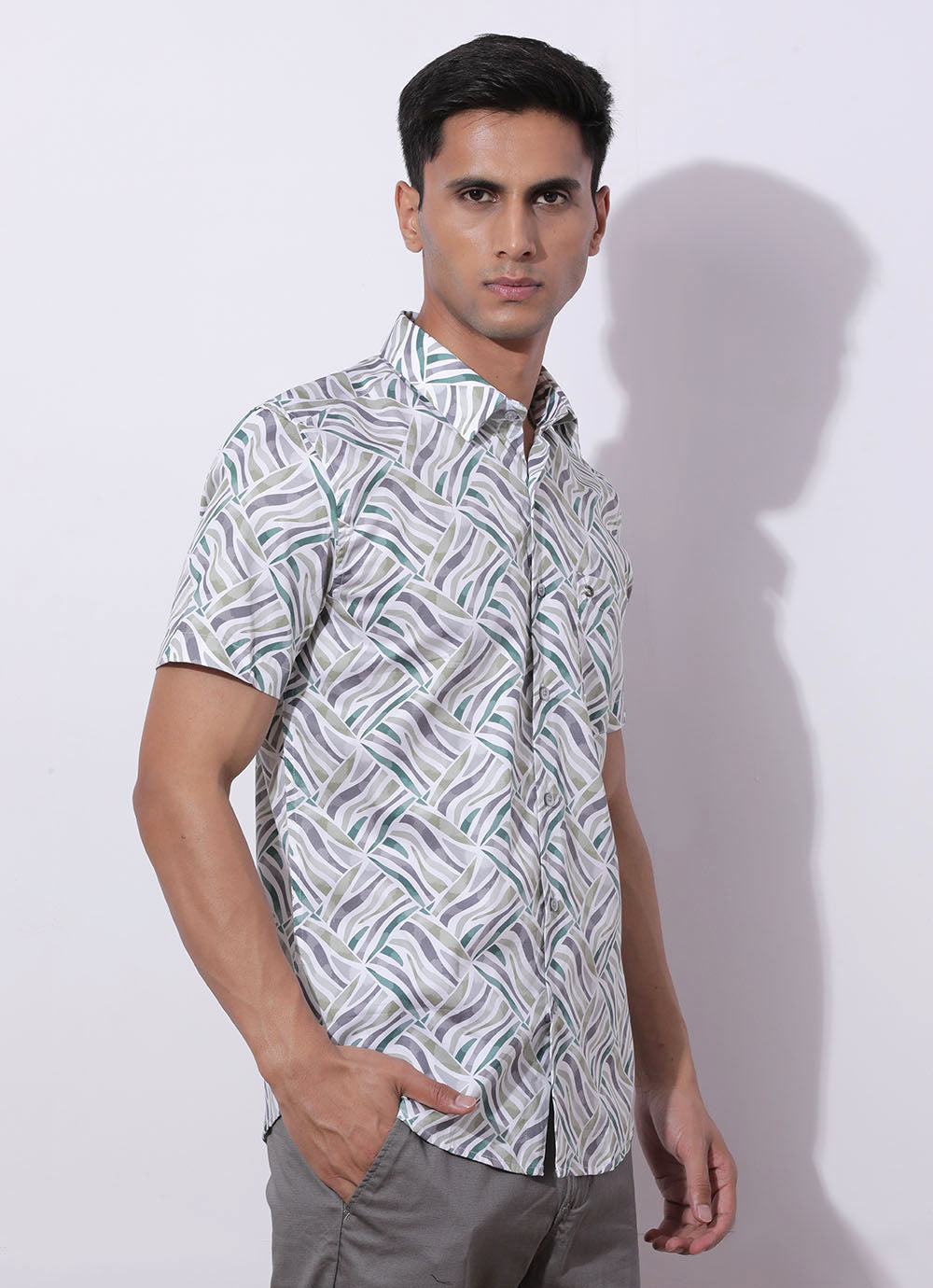 Light Green Print Cotton Slim Fit Shirt