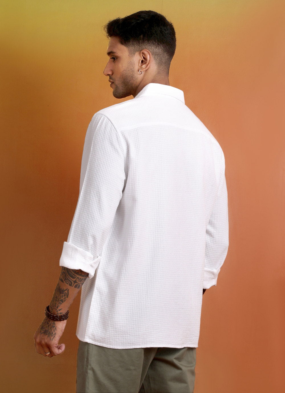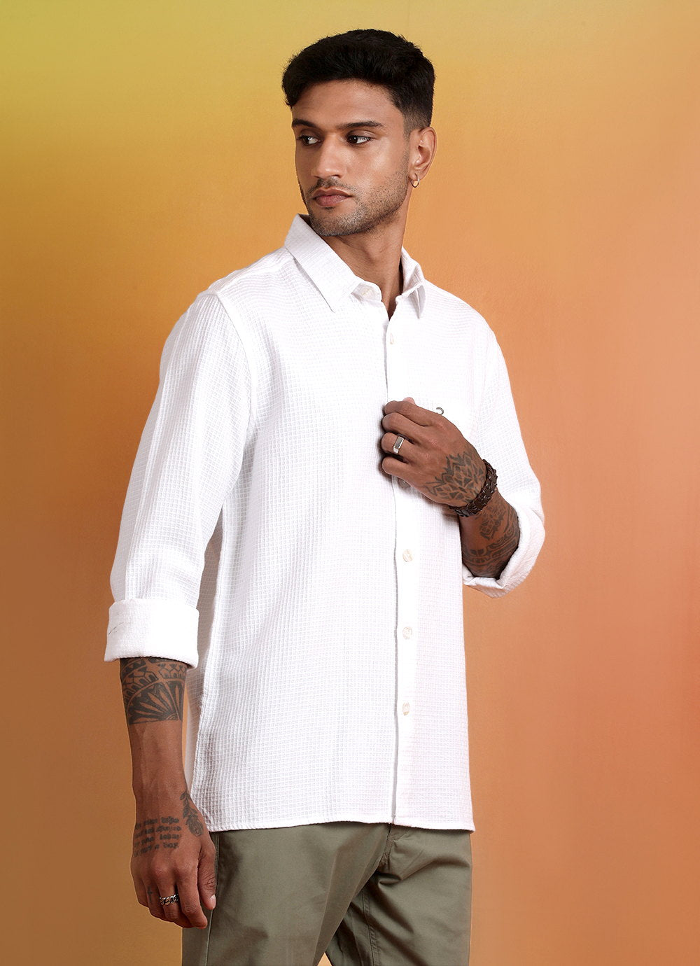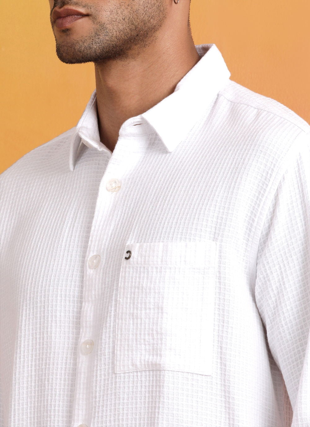 White Solid Waffle Slim Fit Shirt