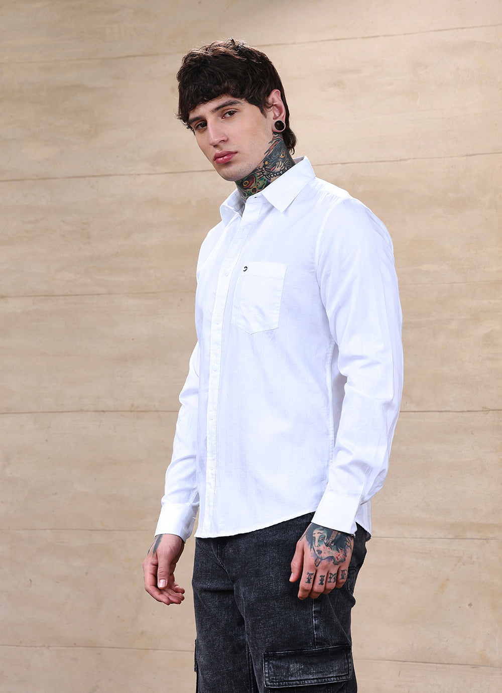 Impeccably tailored in fine cotton, this slim-fit shirt blends timeless elegance with subtle modern detailing. The understated stripe texture elevates the classic white shirt, giving it a refined depth that feels both luxurious and versatile. Lightweight and breathable, the fabric ensures comfort while exuding sophistication.