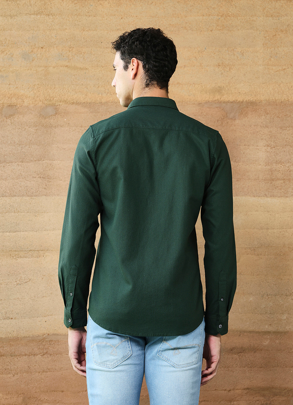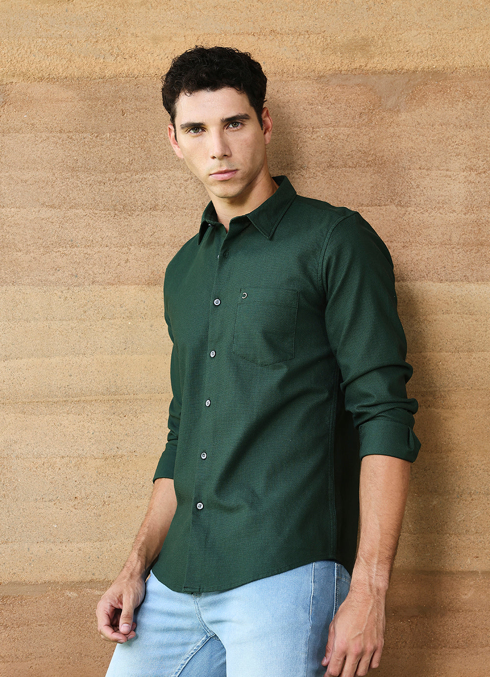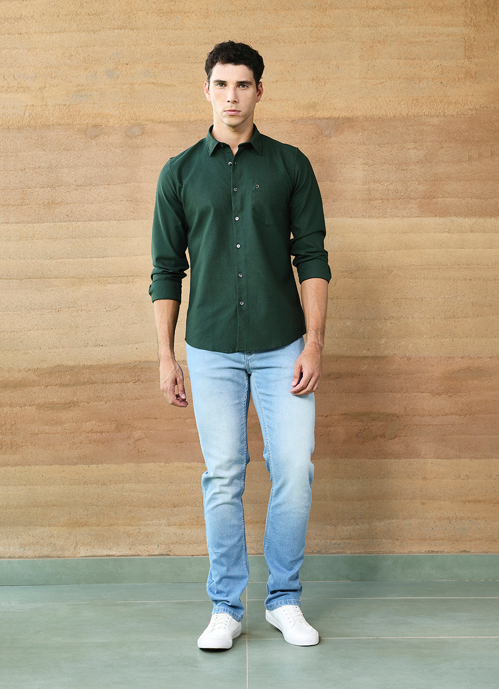 Green Solids Cotton Slim Fit Shirt