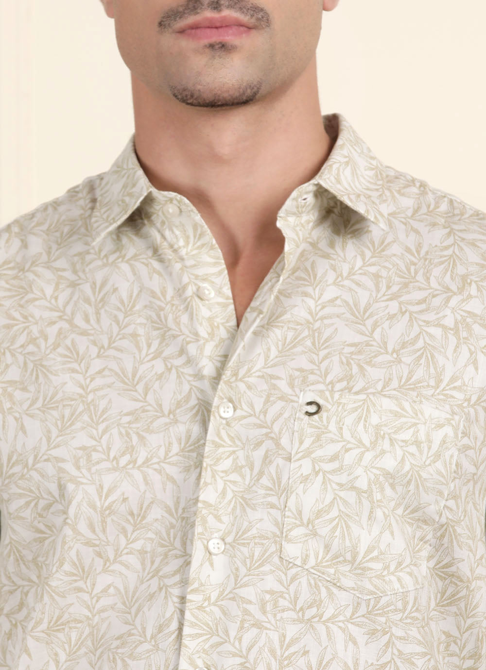 Print with personality—this green shirt has full sleeves and all-day attitude. Style it with navy pants or stone-wash jeans.