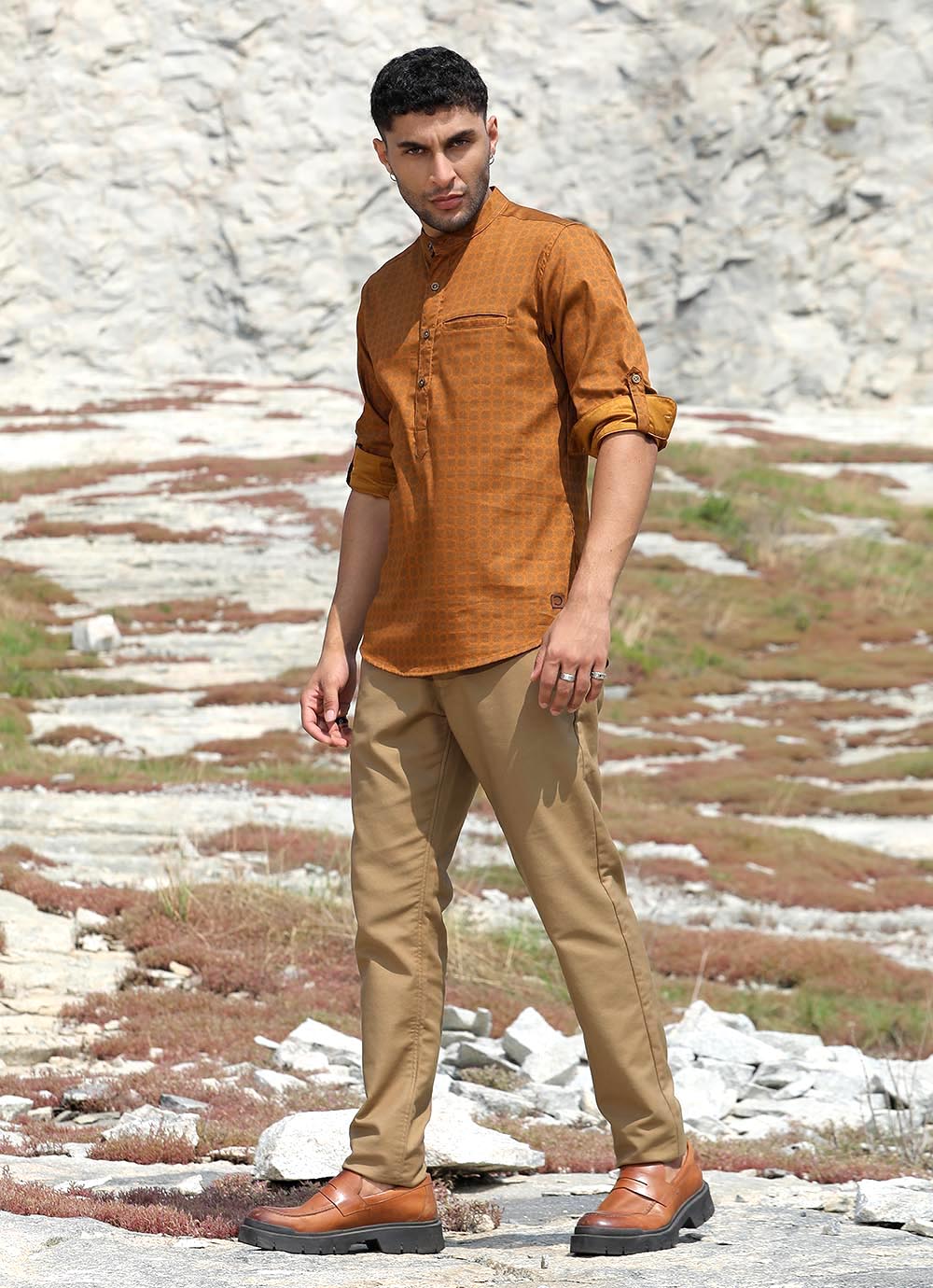 Step up your style with this Rust Cotton Shirt, featuring a sleek mandarin collar, full sleeves, and a modern welt pocket for an effortlessly cool vibe. Perfect for both casual and semi-formal looks. Pair with chinos and loafers for a sharp, polished look that says ‘I’ve got this’!