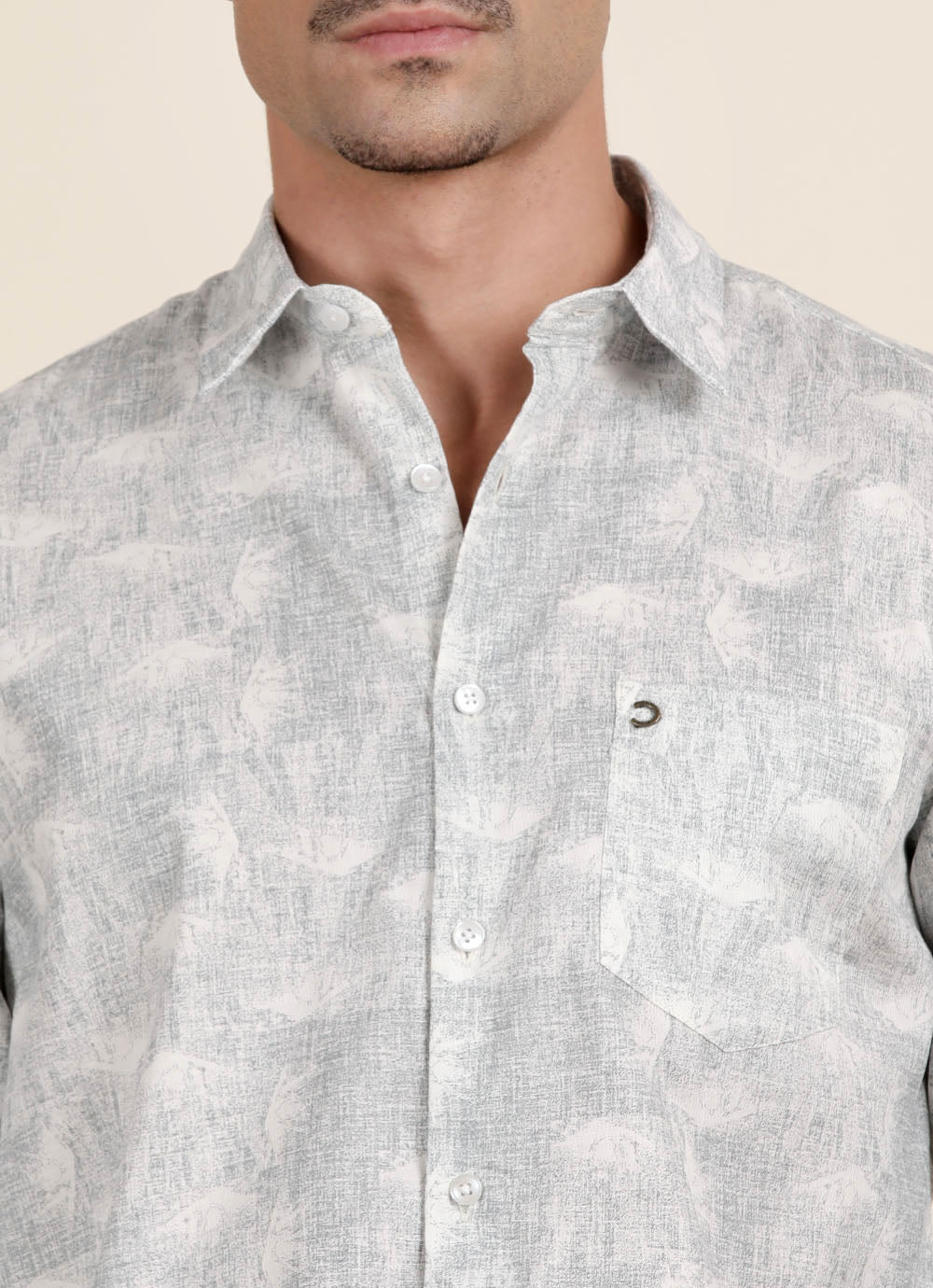 Blue Print Cotton Slim Fit Shirt