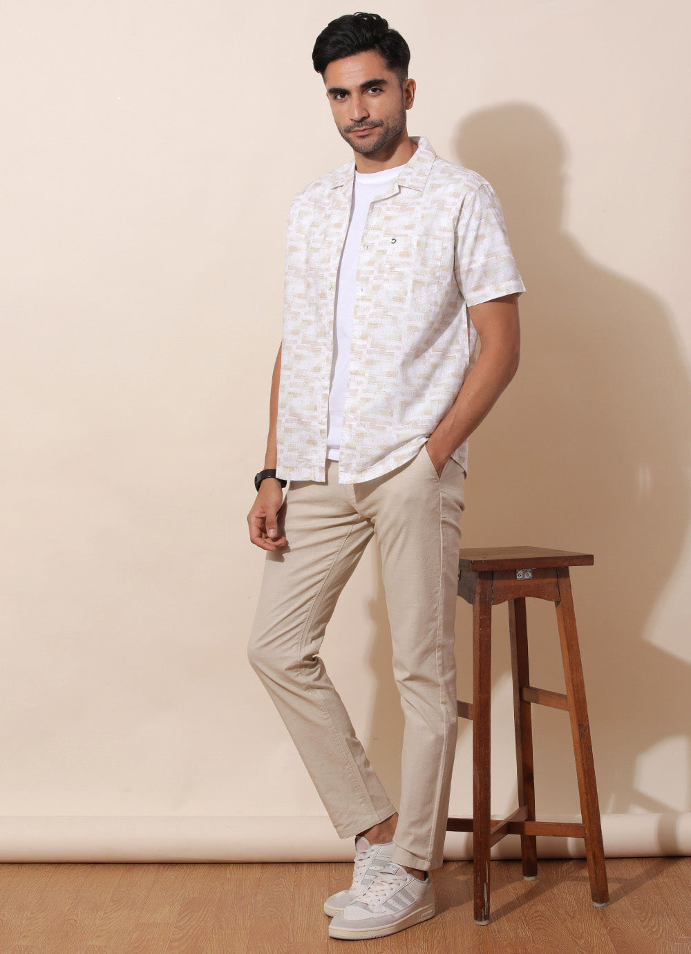 Yellow Cotton Shirt – a burst of sunshine for your wardrobe! With half sleeves and a Cuban collar, it's a contemporary take on retro chic. The patch pocket adds functionality and style. Pair with high-waisted denim shorts and platform sandals for a playful and on-trend look that radiates warmth and style. Embrace the sunshine and stand out in style!
