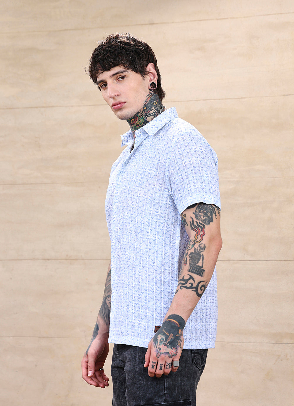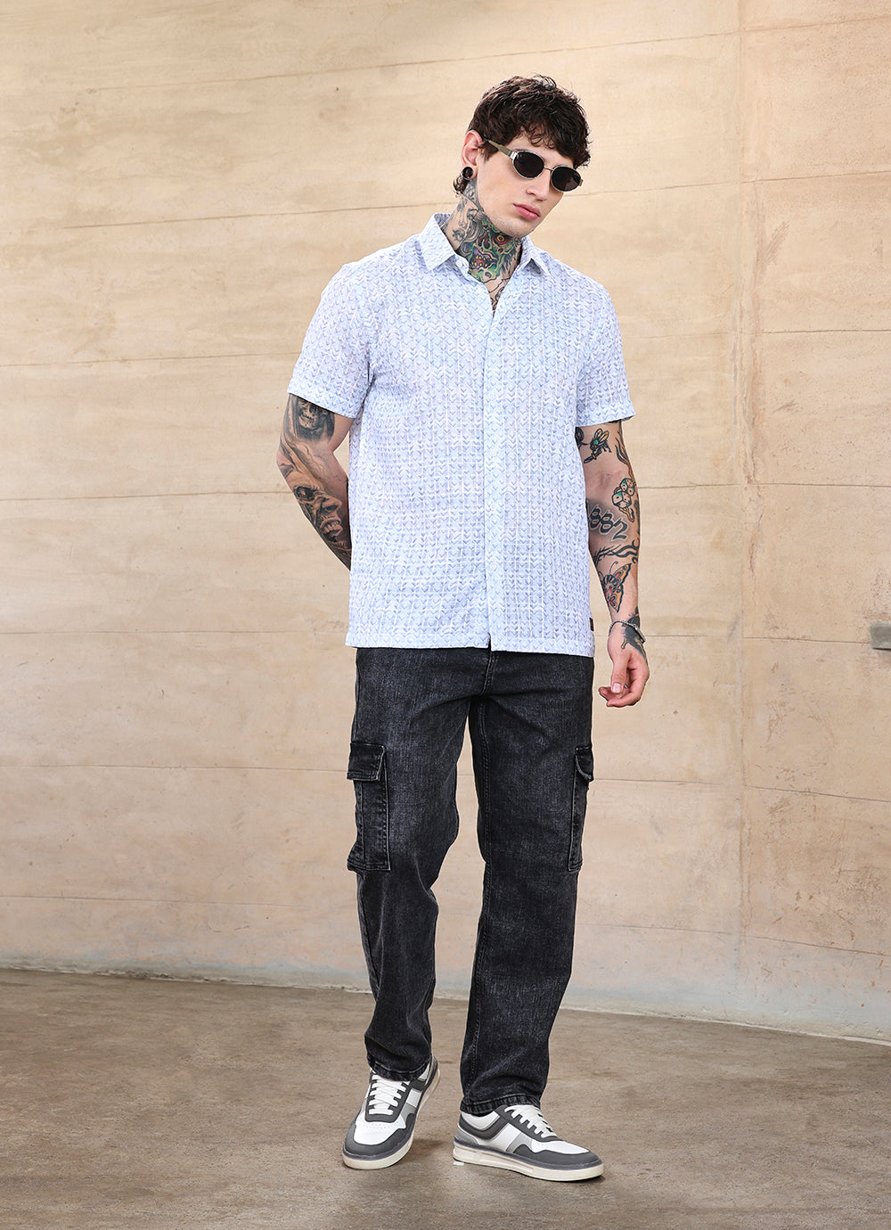 The Blue Print Amslar Cotton Slim Fit Shirt combines breathable cotton fabric with a unique printed texture, offering both comfort and modern style. Its slim fit ensures a sharp silhouette, while the short sleeves make it ideal for casual and semi-formal occasions.