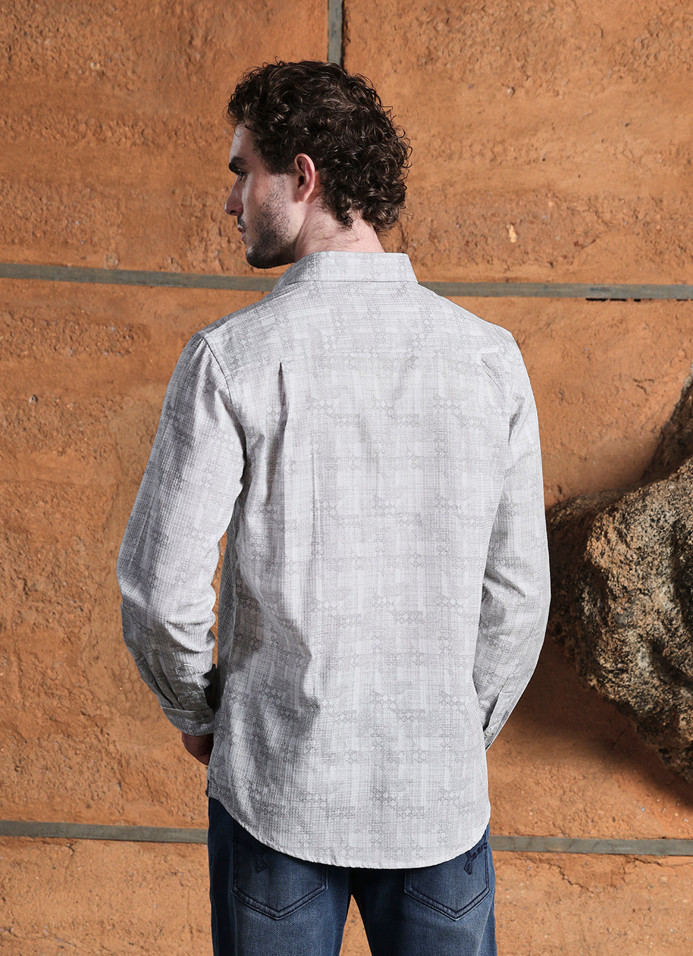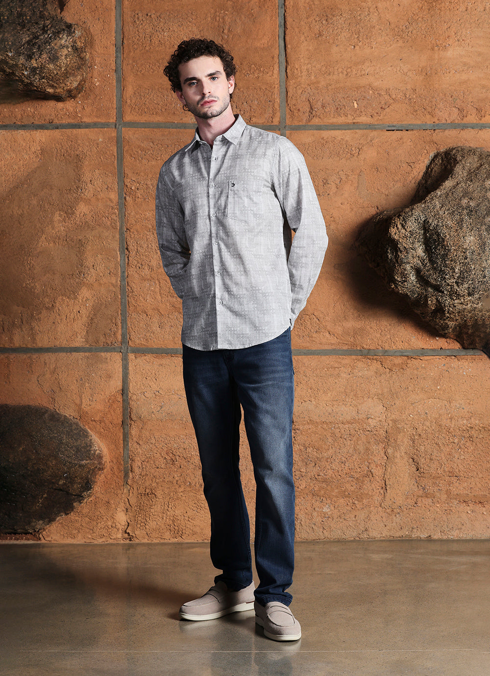 The Grey Print Cotton Slim Fit Shirt is a modern staple designed for effortless style. Crafted from soft, breathable cotton, this slim-fit shirt offers all-day comfort while maintaining a polished silhouette. The subtle printed pattern adds a contemporary touch, making it perfect for both casual and semi-formal occasions.