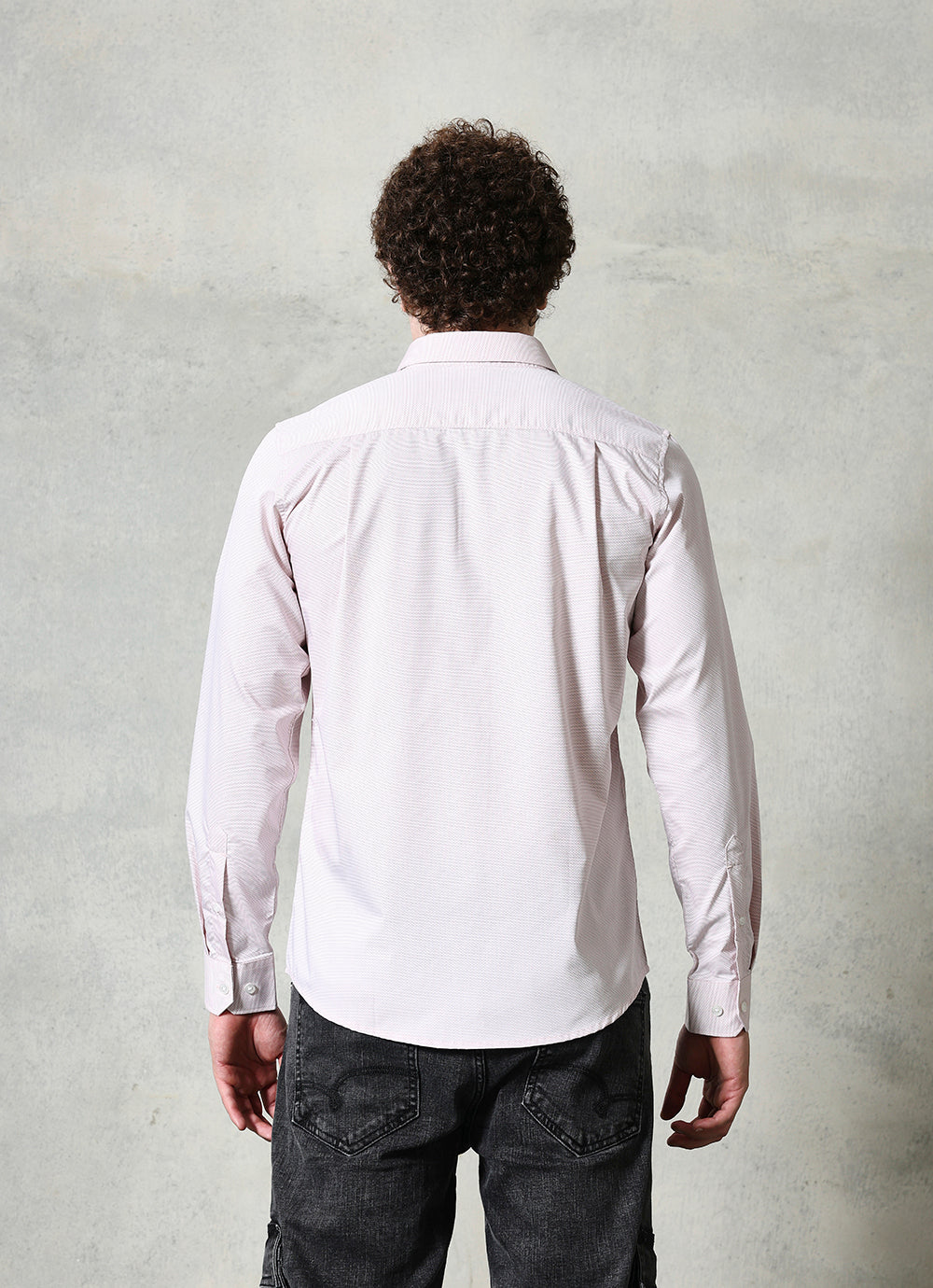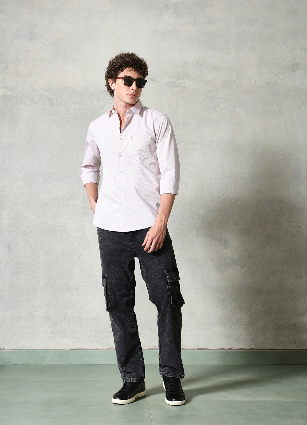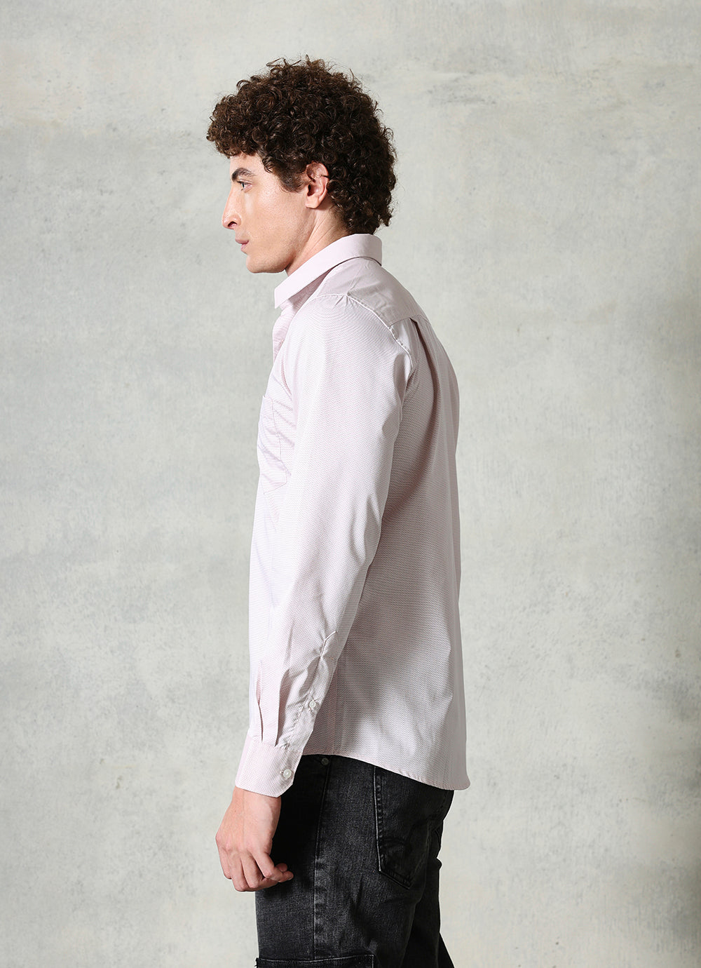 Crafted from premium cotton fabric, this slim-fit shirt blends everyday comfort with a polished finish. The solid light brown tone gives it a versatile edge, making it suitable for both office wear and casual outings. Designed with a sharp slim silhouette and button-down closure, it ensures a modern, refined look.