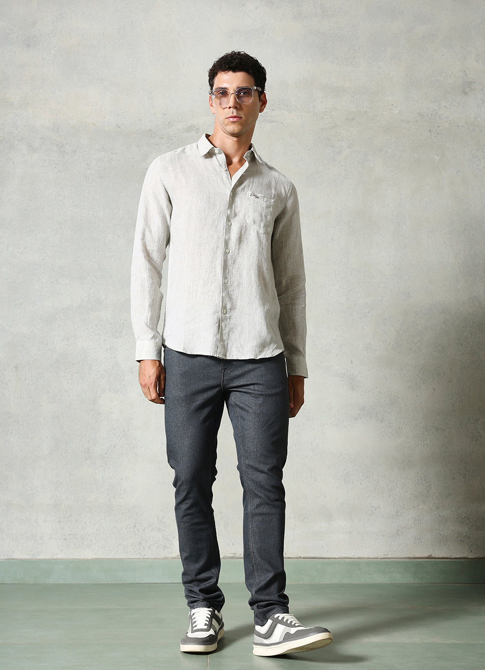 Tailored from premium linen fabric, this slim-fit shirt offers a breathable and lightweight feel, making it perfect for all-day comfort. The solid natural tone enhances its timeless appeal, while the sharp slim silhouette ensures a modern, refined look.