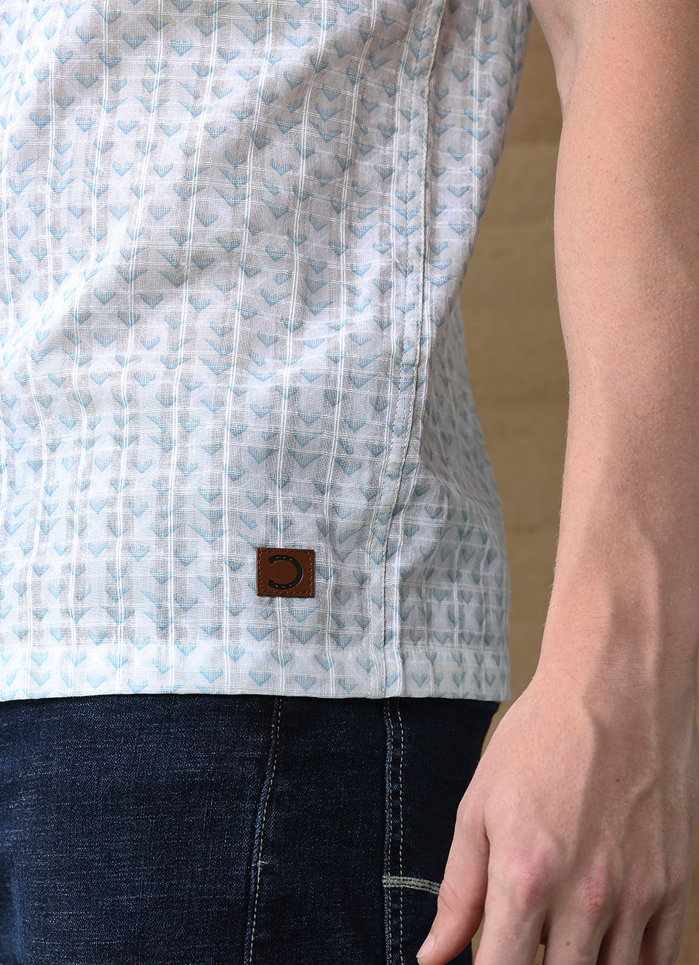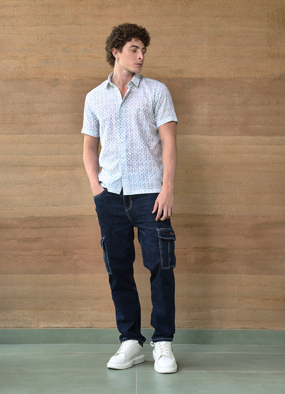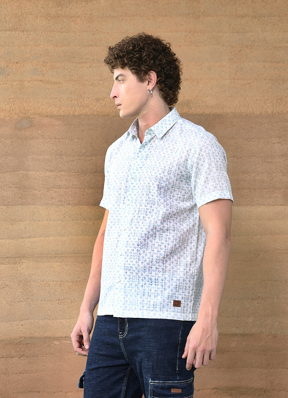 Stay cool and stylish with this Teal Print Amslar Cotton Slim Fit Shirt. Designed in breathable cotton, it features a subtle all-over teal print on a light base, creating a refreshing and versatile look. The short-sleeve design keeps it relaxed and easy-going, while the slim fit cut ensures a sharp, modern silhouette. A perfect choice for casual days or summer evenings.