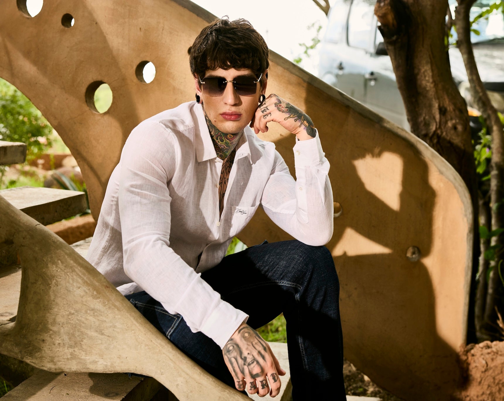 Navy Patch Indigo Denim Slim Fit Shirt