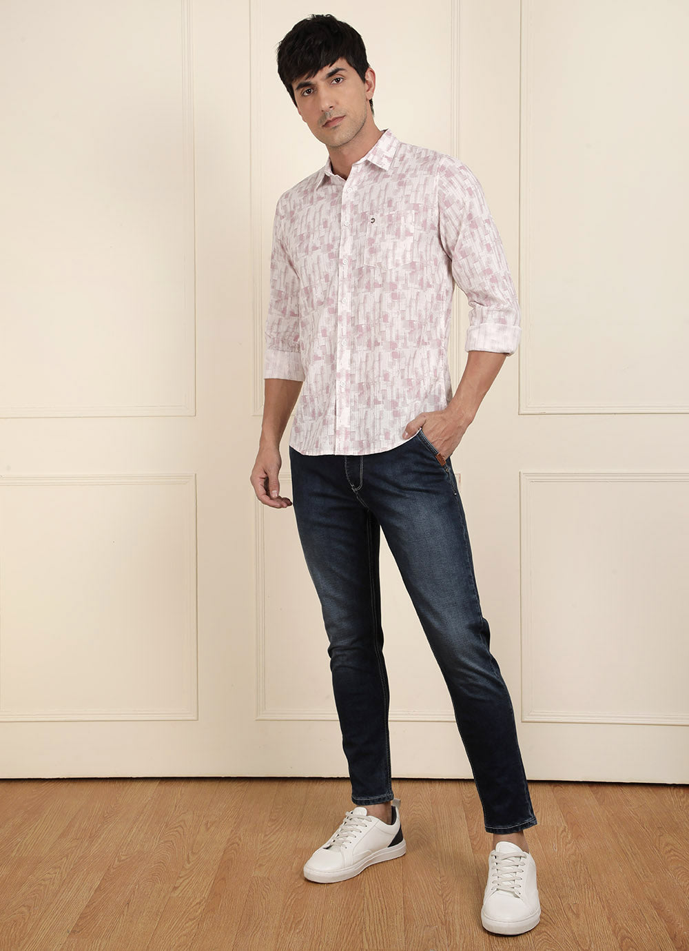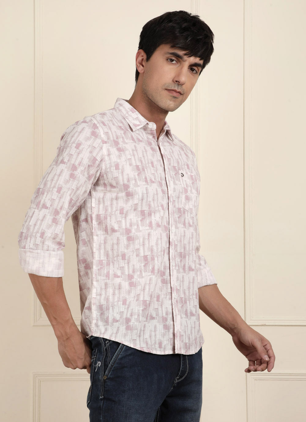 Unveiling the Classic Pink Printed shirt: a timeless treasure for your wardrobe! Meticulously crafted from cotton, it boasts full sleeves and a sophisticated spread collar. Complete with a practical patch pocket, it's both stylish and functional. Pair with dark wash denim and brown leather loafers for a effortlessly refined look.