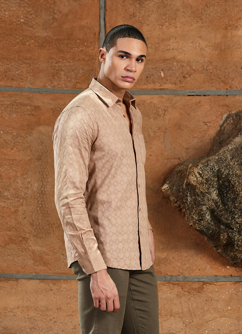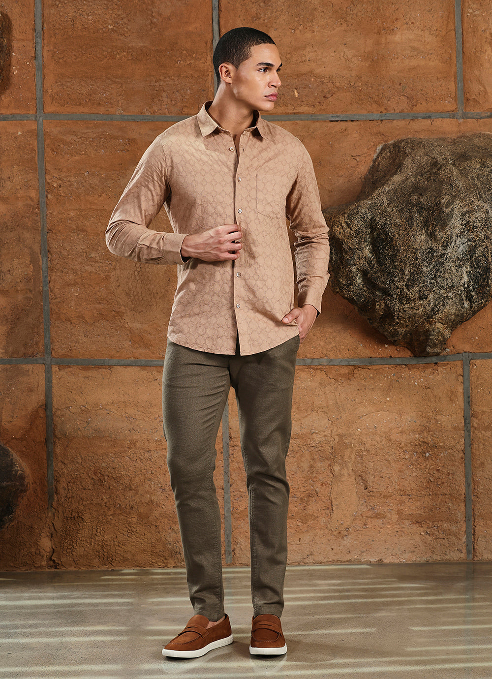 Elevate your everyday look with this Khaki Solids Cotton Slim Fit Shirt, designed for the man who values both comfort and refinement. The earthy khaki tone is enriched by a subtle textured weave, giving it a modern yet timeless appeal. Crafted from breathable cotton and tailored in a slim fit, this shirt offers all-day ease while maintaining a sharp silhouette