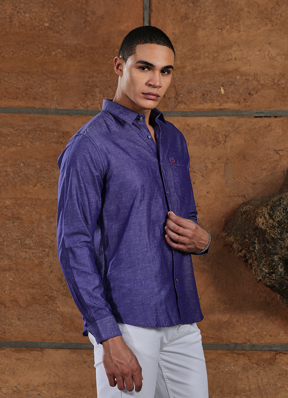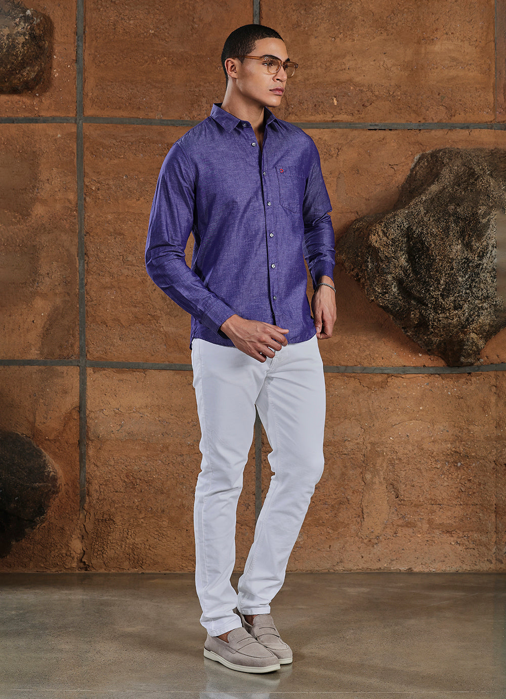 Add a touch of bold elegance with this Purple Solids Cotton Slim Fit Shirt. Tailored from breathable cotton, it offers both comfort and sharp structure. The rich solid hue makes it versatile for dressing up or down, while the slim fit keeps the silhouette modern and refined.