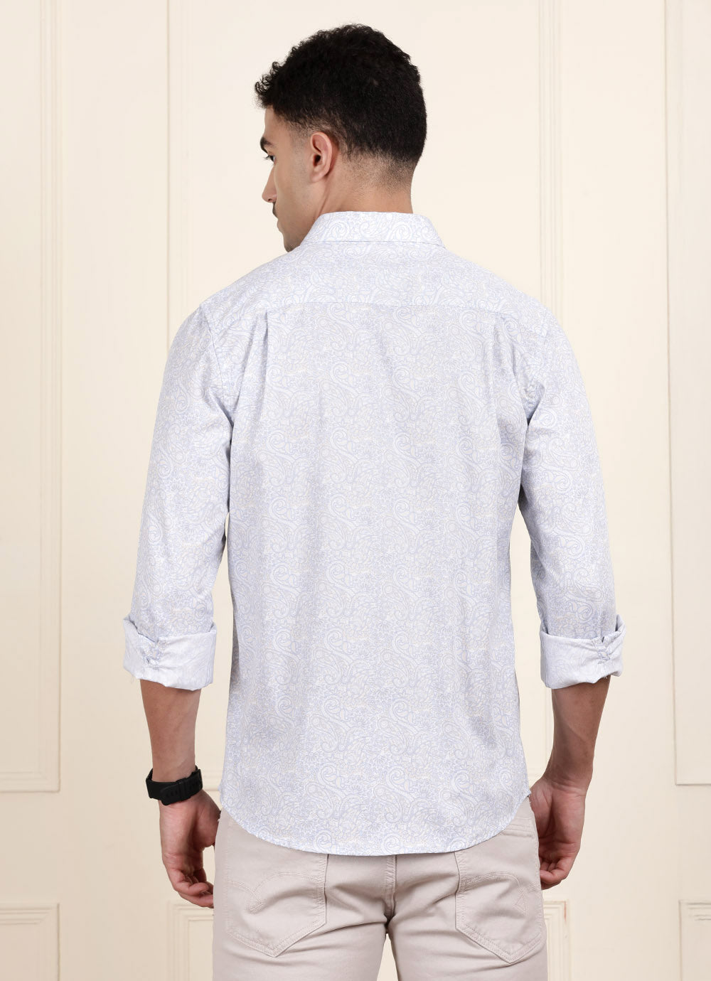 Printed to stand out, styled to fit right—this blue number adds texture and tone to your everyday rotation. Works with ripped jeans or under a casual blazer.