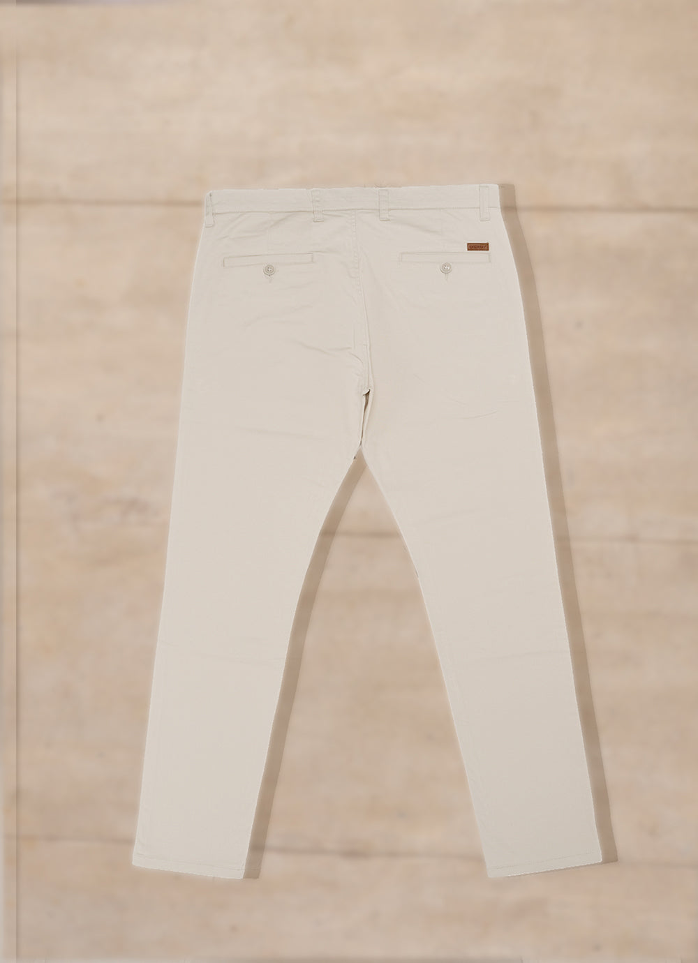 Cut from a premium satin-finish cotton blend, these trousers deliver a smooth, lustrous surface that elevates everyday tailoring. The fabric drapes cleanly for a polished, sophisticated look, while the slim fit cut offers a modern silhouette that tapers neatly without compromising comfort. The beige tone makes it a versatile wardrobe essential, easily styled for both business-casual and evening wear.