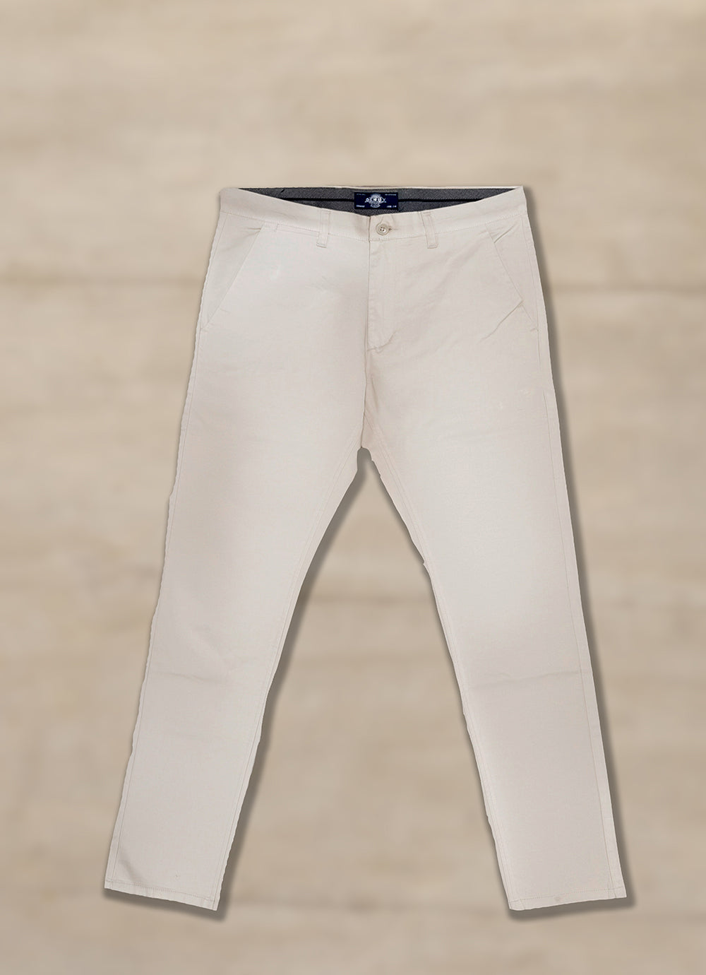 Cut from a premium satin-finish cotton blend, these trousers deliver a smooth, lustrous surface that elevates everyday tailoring. The fabric drapes cleanly for a polished, sophisticated look, while the slim fit cut offers a modern silhouette that tapers neatly without compromising comfort. The beige tone makes it a versatile wardrobe essential, easily styled for both business-casual and evening wear.