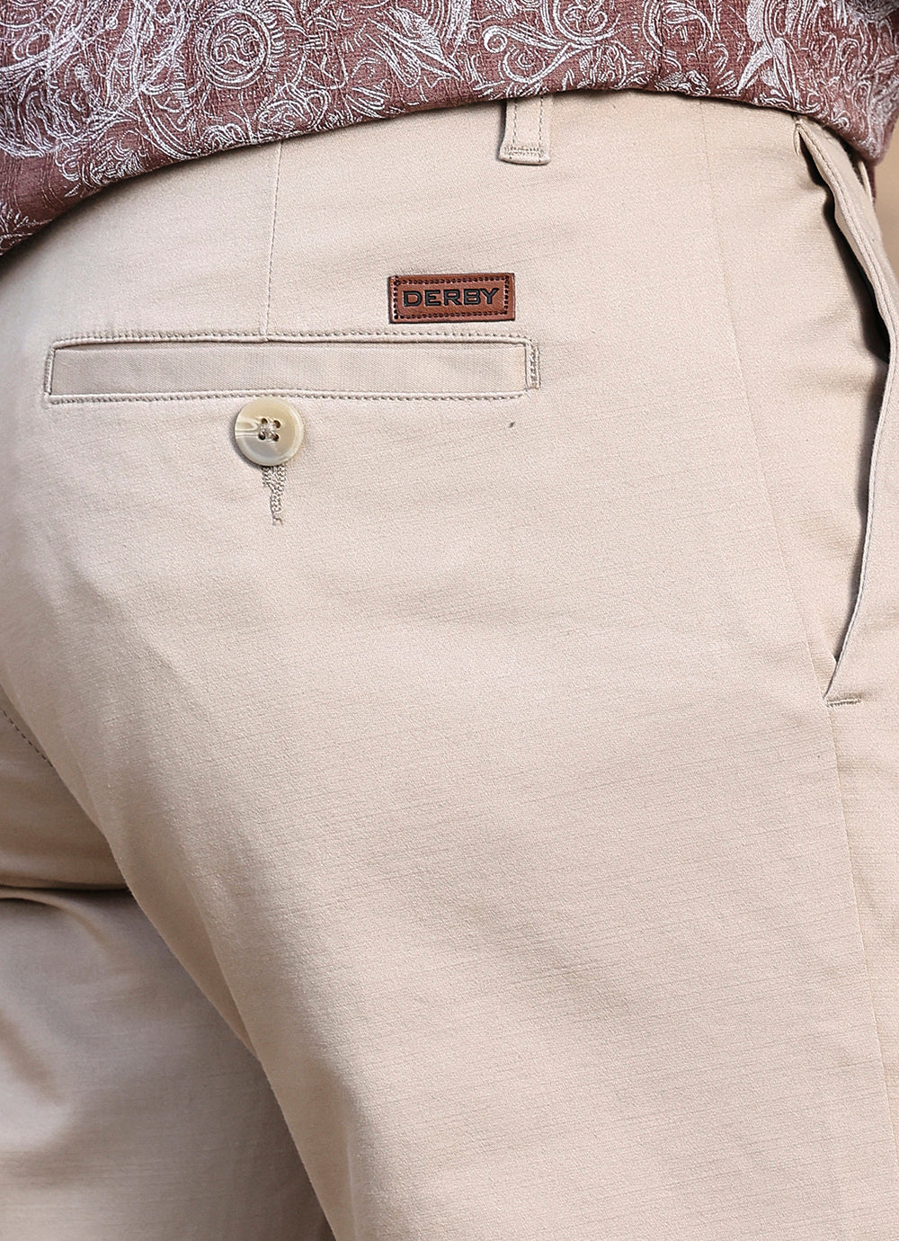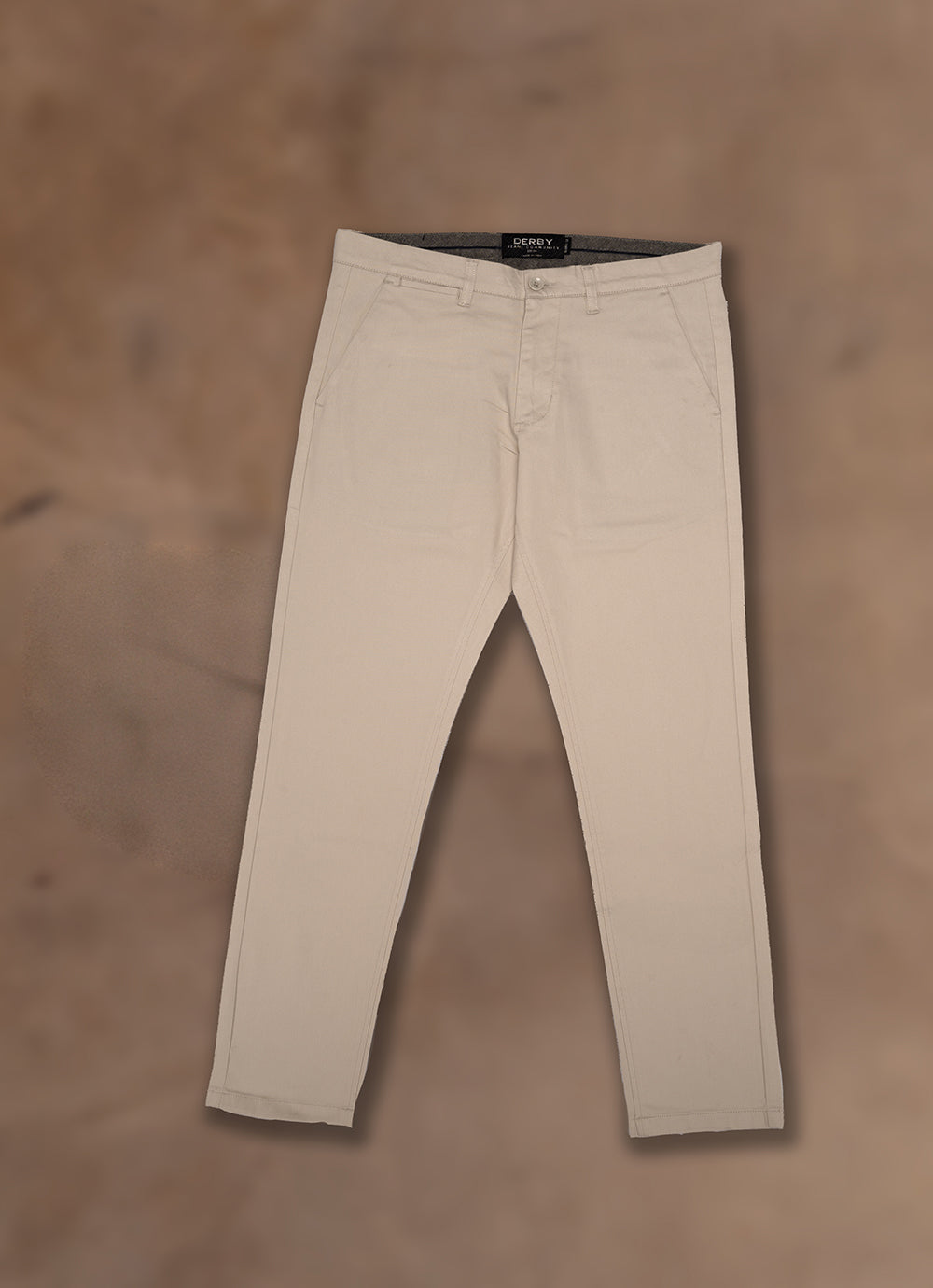 Cut from a premium cotton dobby weave, these trousers exude quiet refinement with a subtle texture that adds depth to the light khaki tone. The fabric strikes a balance between breathable comfort and tailored structure, ensuring all-day ease without compromising on style. The slim fit silhouette flatters while maintaining versatility for both casual and semi-formal looks.