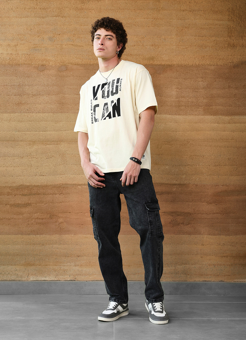 Made from soft, breathable cotton, this oversized T-shirt delivers effortless comfort with a contemporary streetwear edge. The round neckline and bold graphic “YOU CAN” print make it a statement piece that inspires confidence while keeping the look casual and stylish.