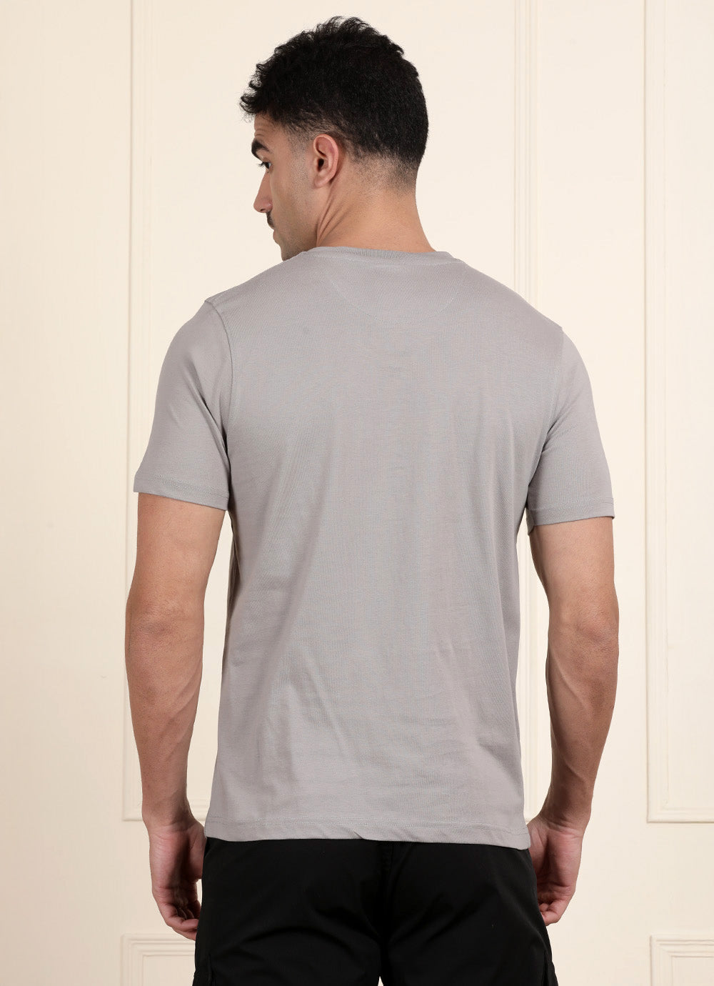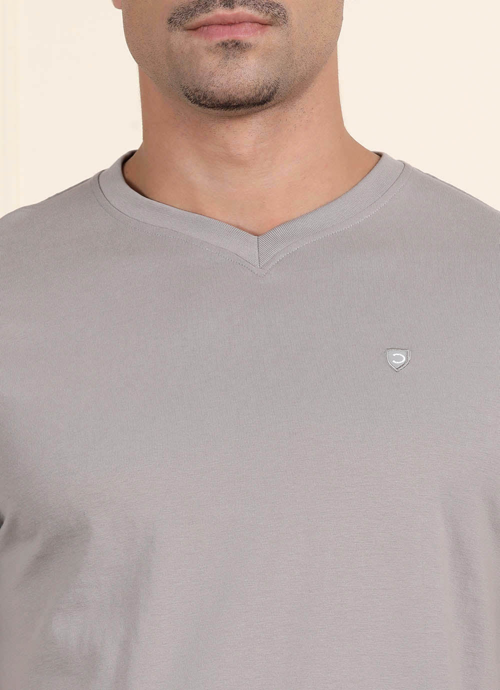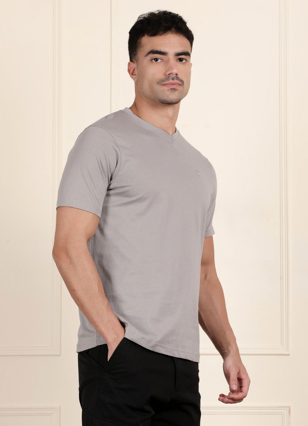 Grey done right—this slim V-neck tee is simple, sharp, and incredibly wearable. Go all-neutral with beige bottoms or boost it with darker layers.