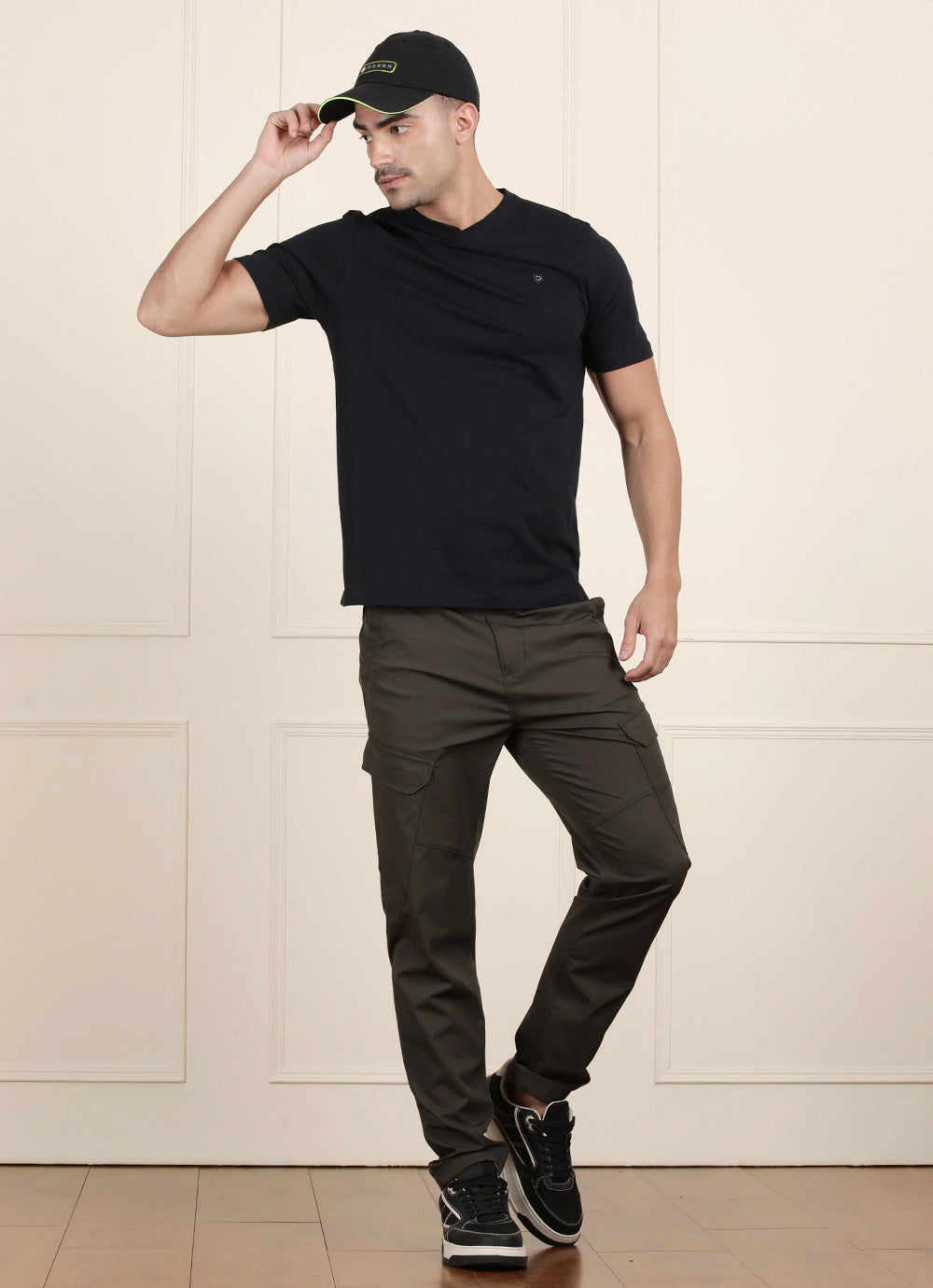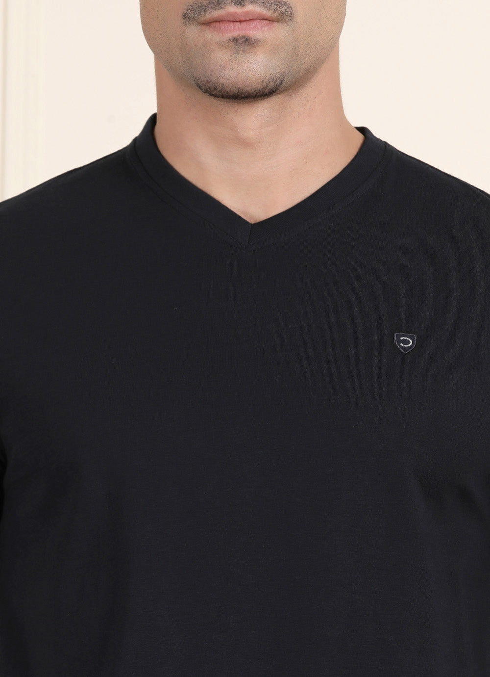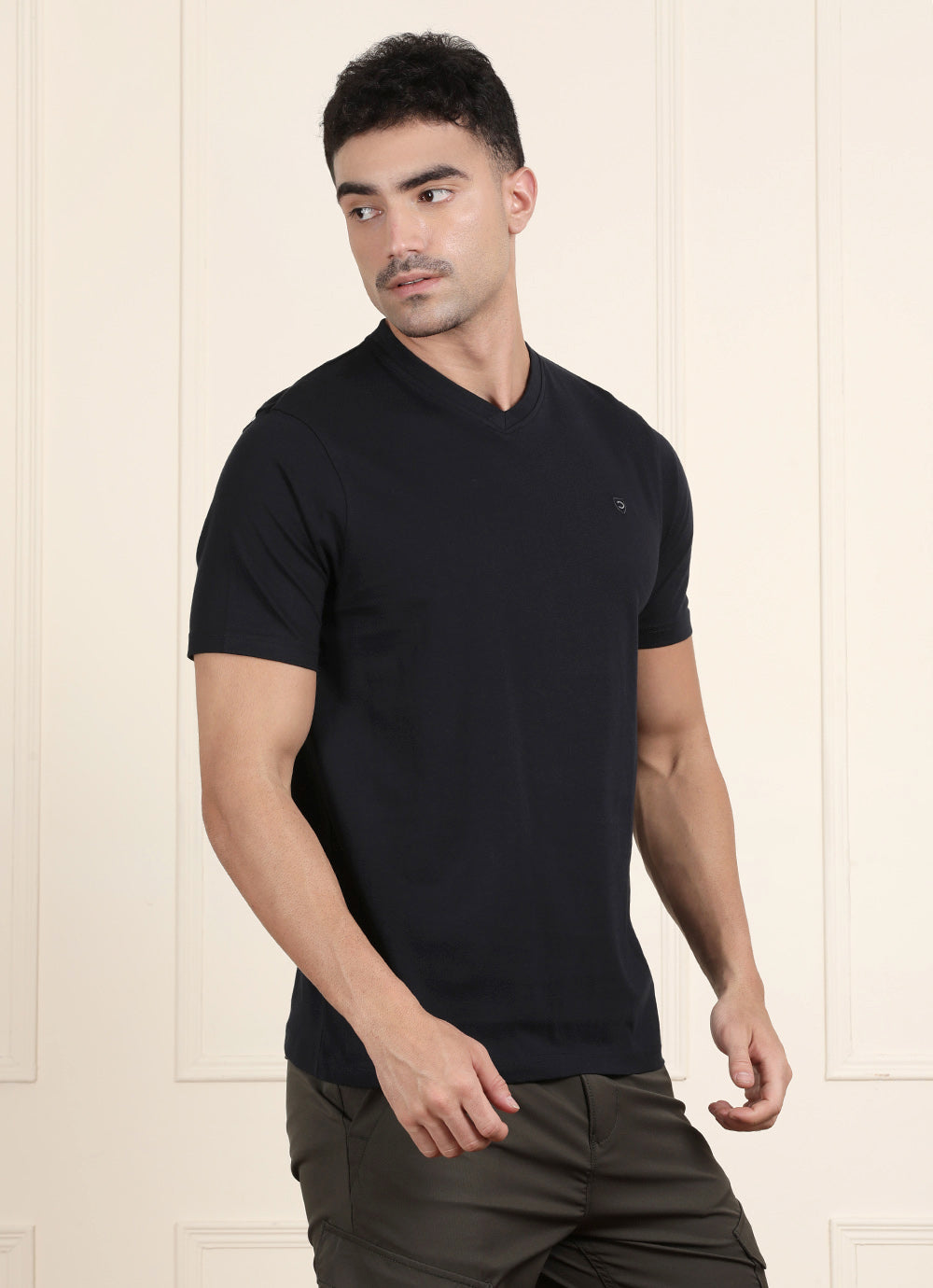 Navy that keeps it classy—this slim V-neck tee works from coffee runs to casual Fridays. Style it with jeans or joggers, no overthinking needed.