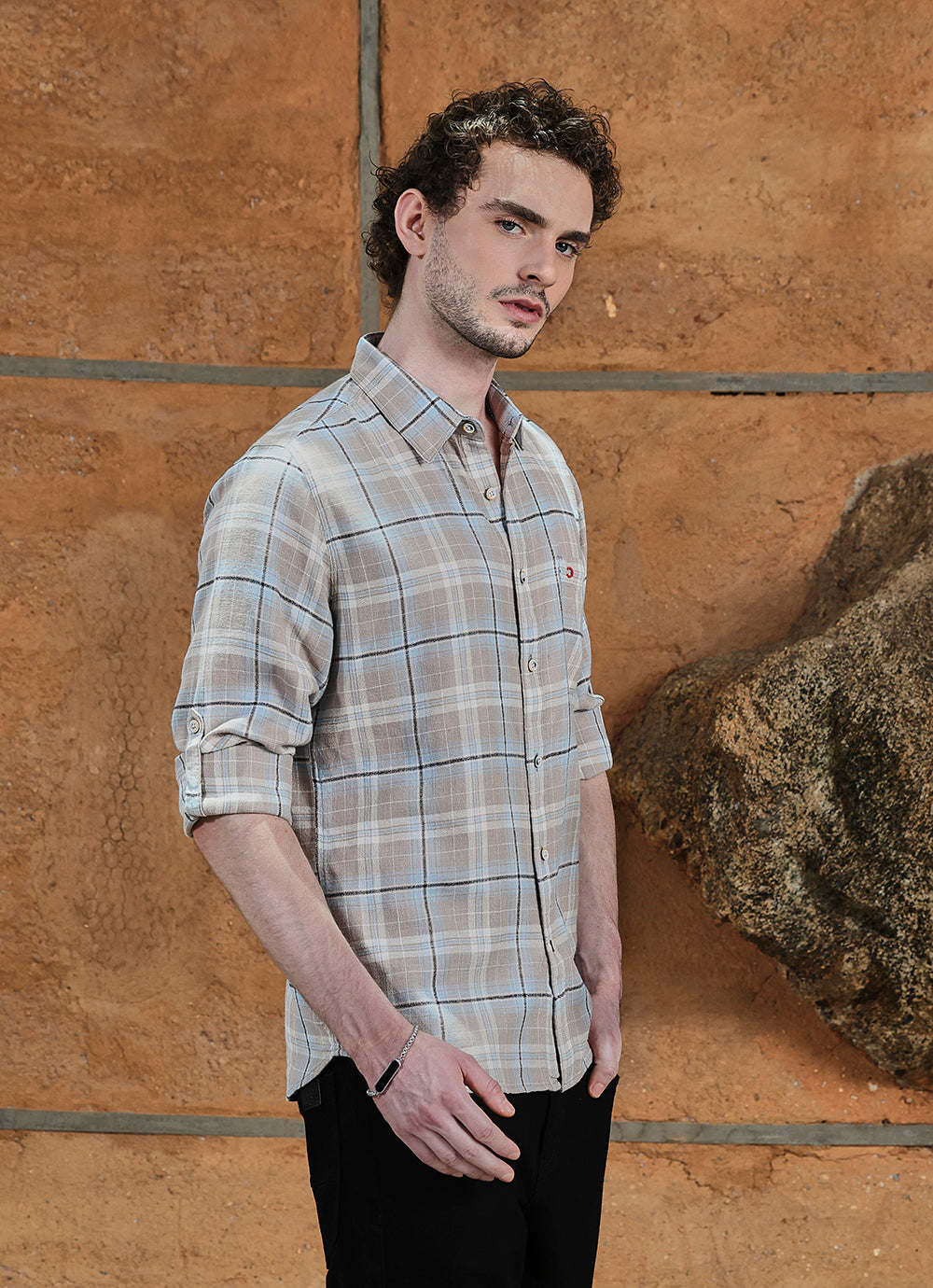 The Beige Checks Cotton Slim Fit Shirt is crafted for effortless sophistication. Featuring a classic checkered pattern in neutral beige tones, this shirt offers versatility for both casual and semi-formal looks. The slim fit cut ensures a sharp silhouette, while the breathable cotton fabric provides comfort throughout the day.
