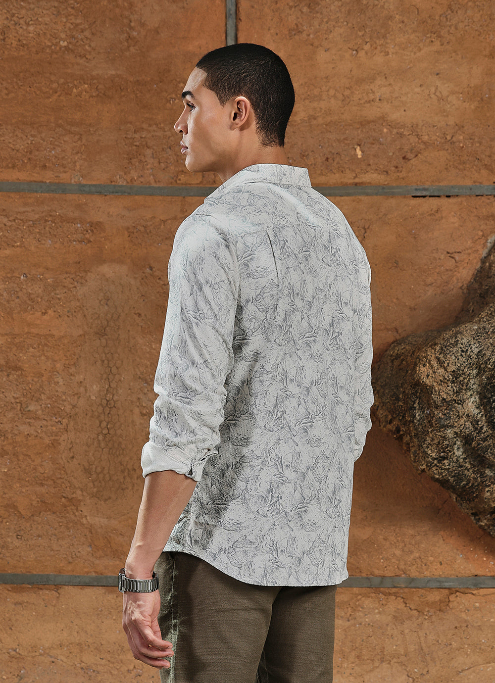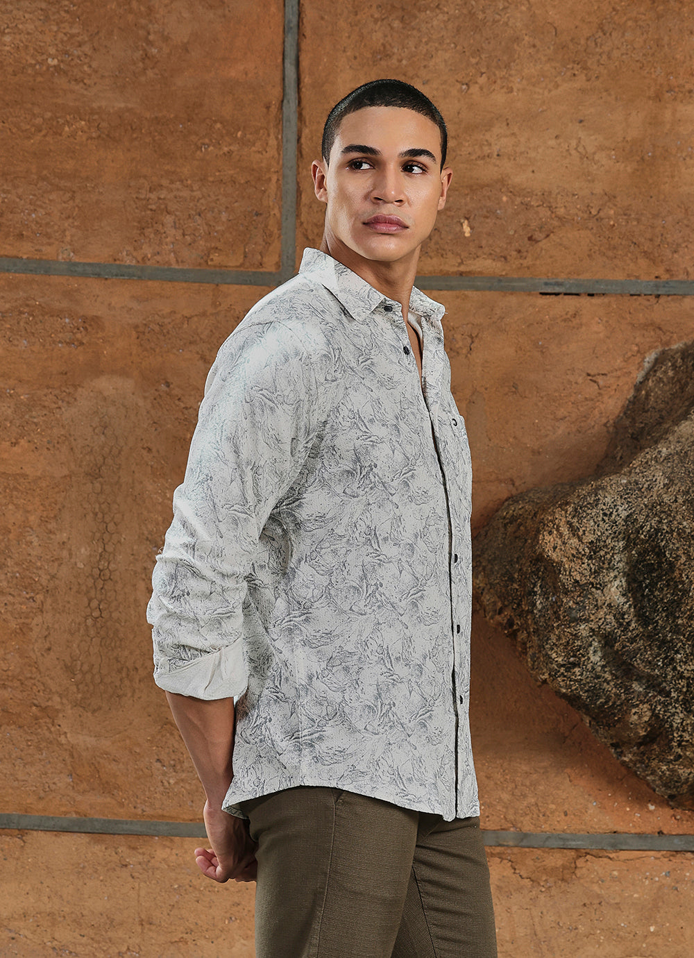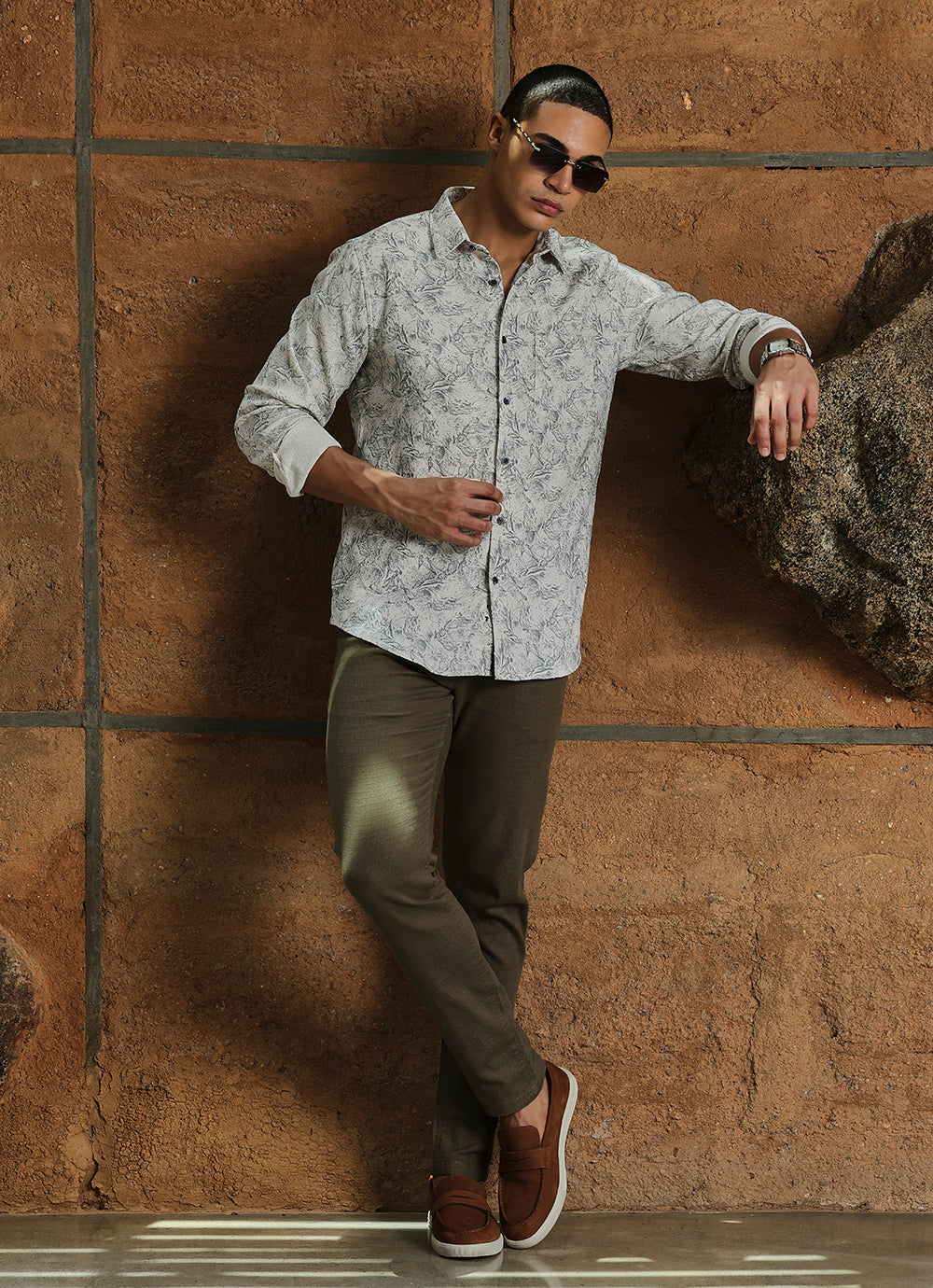 Effortlessly stylish, this Beige Print Cotton Slim Fit Shirt blends subtlety with character. The all-over tonal print adds an artistic edge without overpowering the refined beige base, making it versatile for both casual and semi-formal settings. Crafted from breathable cotton and tailored in a sharp slim fit, it ensures all-day comfort with a sleek silhouette.
