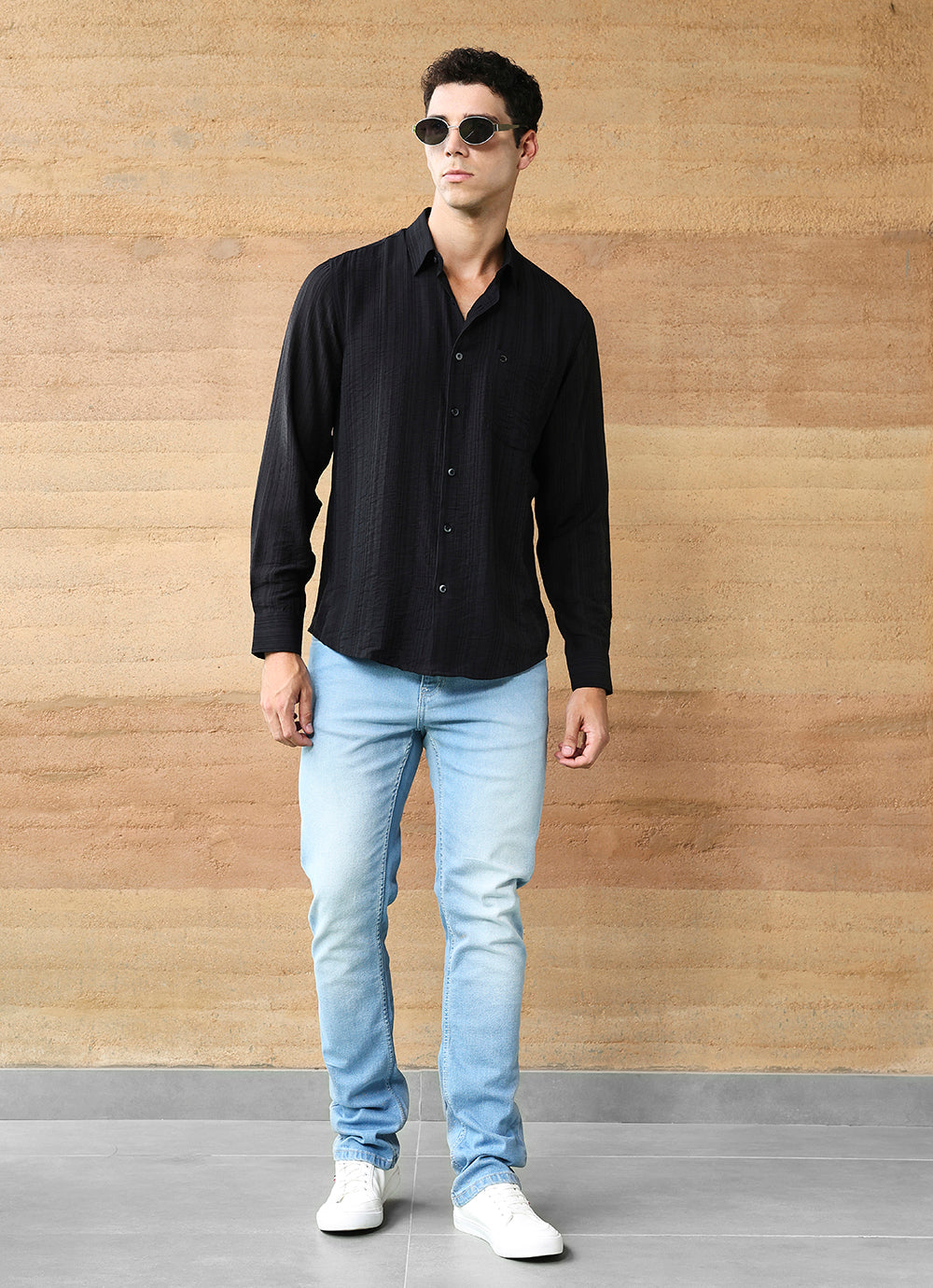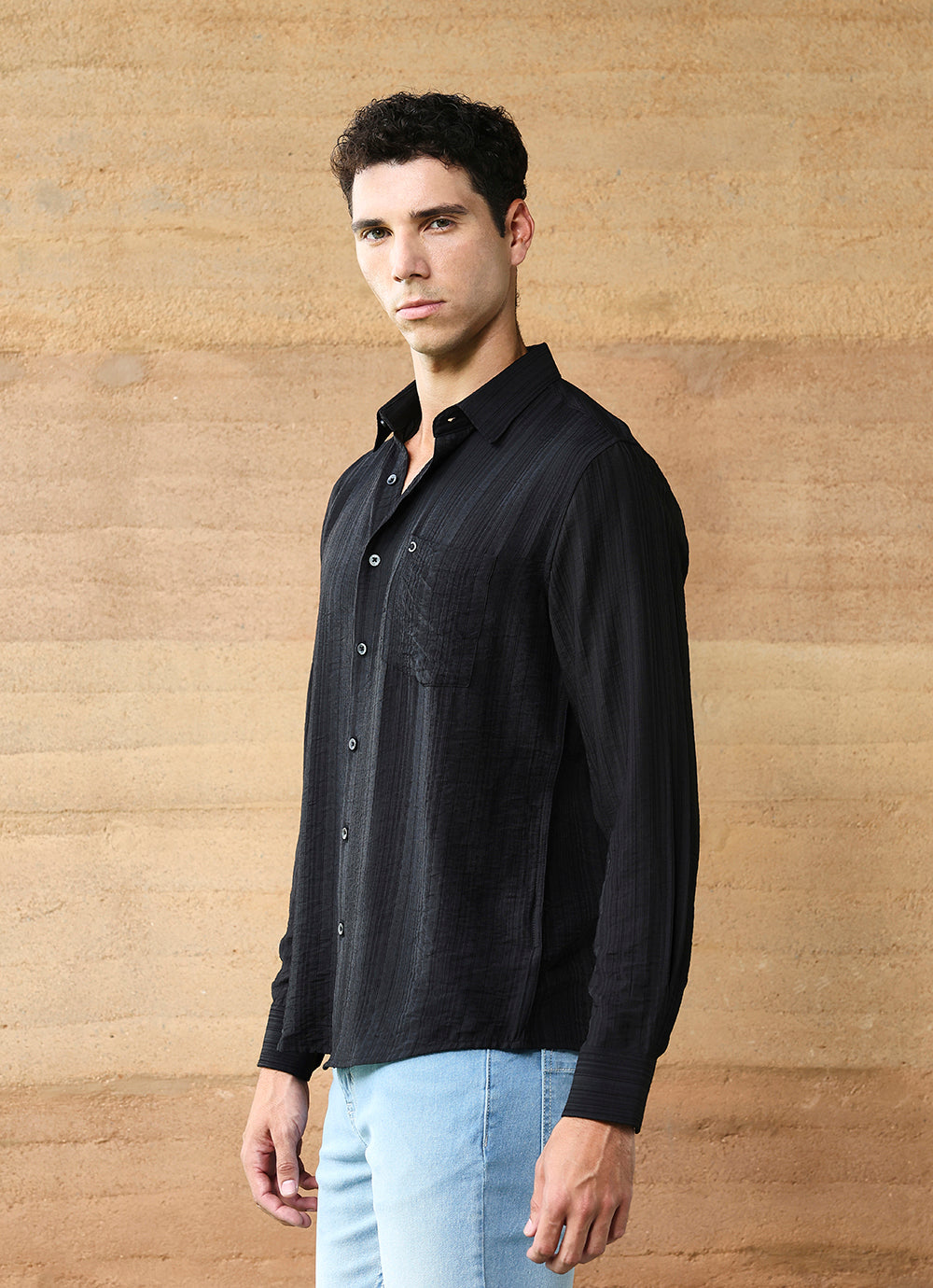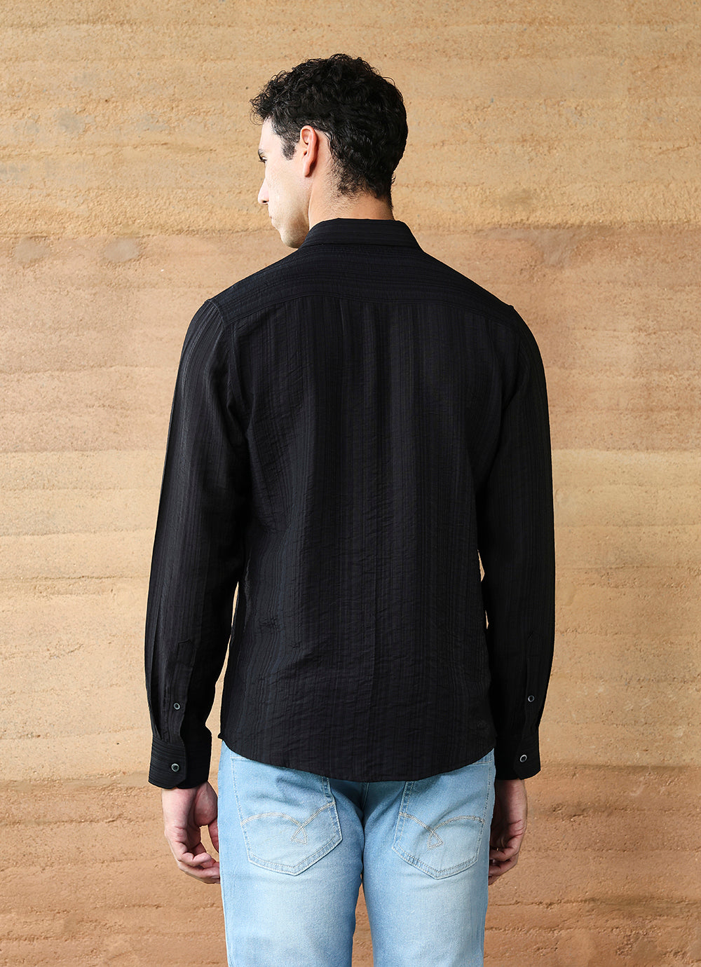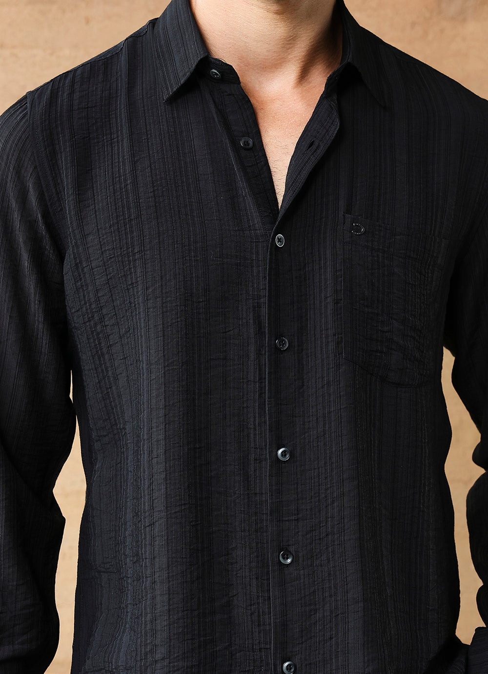 Upgrade your essentials with this Black Stripes Cotton Satin Slim Fit Shirt. Crafted from soft cotton satin, it features subtle vertical stripe detailing that adds depth and refinement to the classic black shirt. The slim fit cut offers a sharp silhouette, while the button-down front and chest pocket keep it versatile for both formal and casual styling. A timeless piece that balances sophistication with everyday comfort.