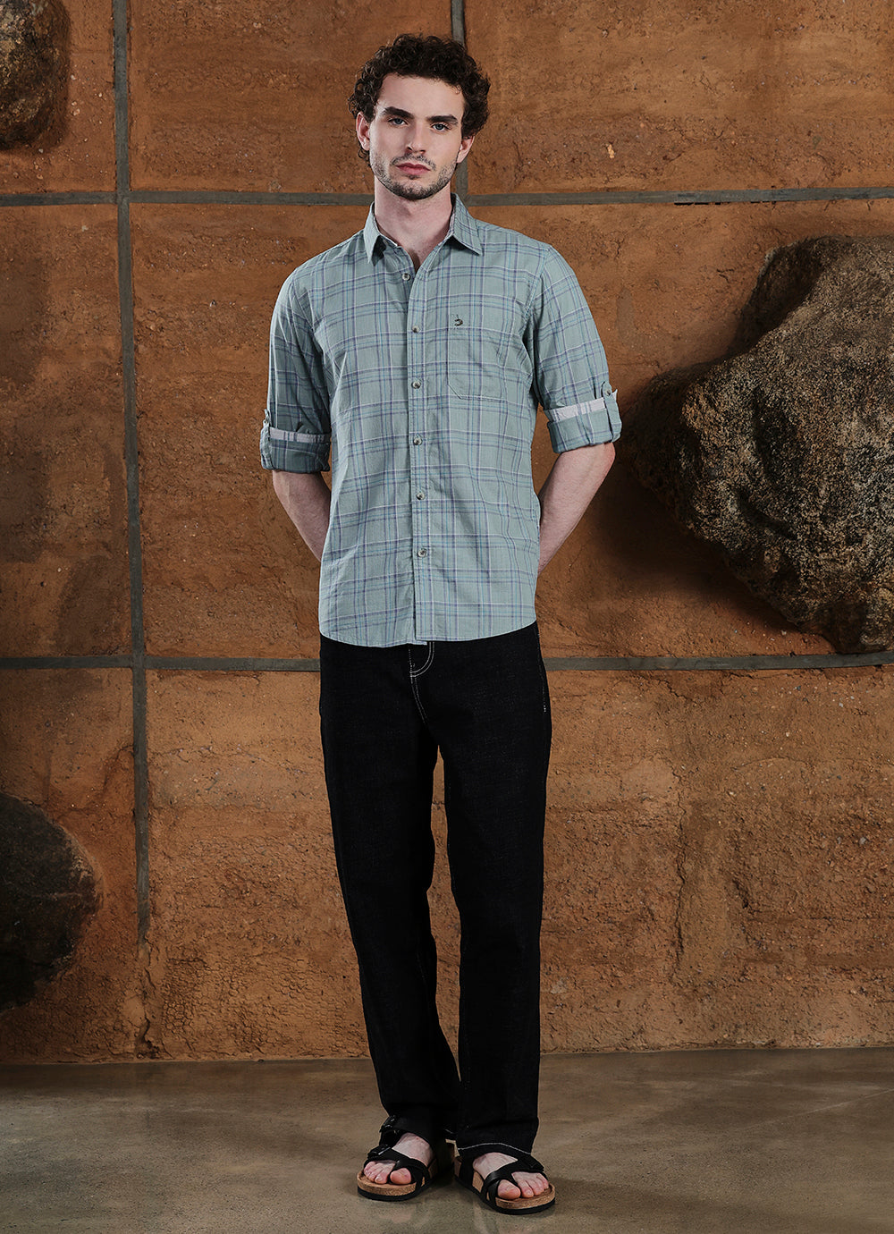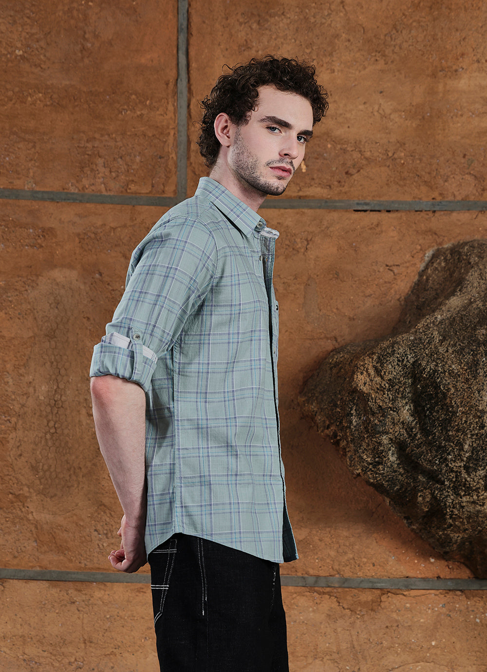 Effortlessly cool and versatile, this Blue Checks Cotton Slim Fit Shirt combines classic charm with modern tailoring. Crafted from breathable cotton, it keeps you comfortable all day while the slim fit ensures a sharp, structured silhouette. The subtle check pattern adds character without overwhelming, making it equally suited for casual Fridays or weekend outings. Designed with roll-up sleeves for added ease, this shirt is your go-to for a relaxed yet refined look.