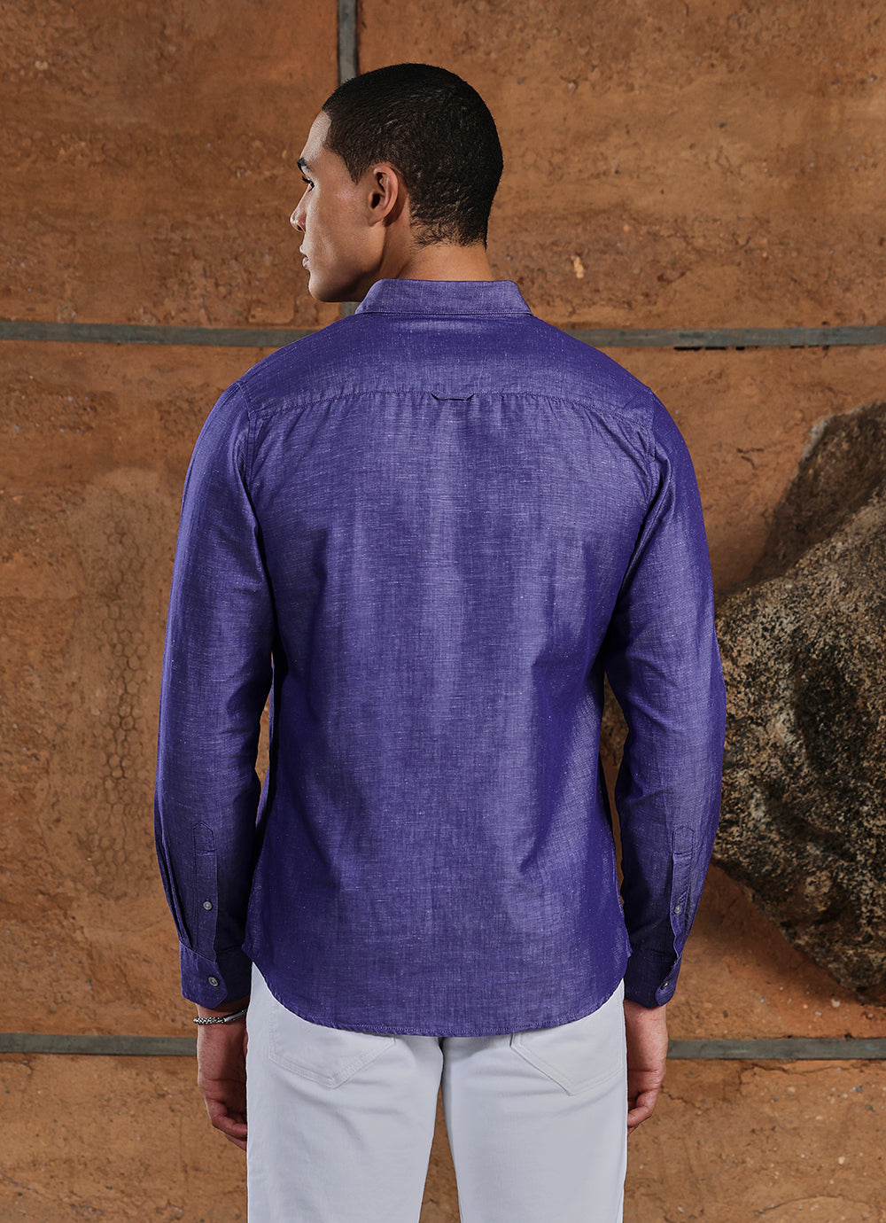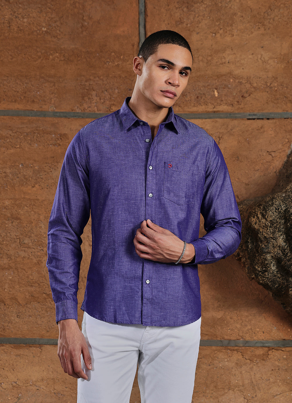 Add a touch of bold elegance with this Purple Solids Cotton Slim Fit Shirt. Tailored from breathable cotton, it offers both comfort and sharp structure. The rich solid hue makes it versatile for dressing up or down, while the slim fit keeps the silhouette modern and refined.